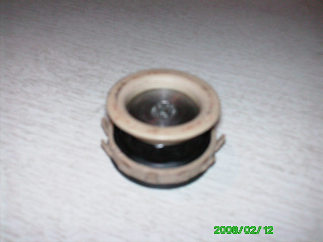 Итак.Первая-как это выглядит в сборе,только вылет пятака на машине поменьше.Дальше корпус муфты с привёрнутым пятаком.Пятак диам.60 мм. высотой 15 мм. В центре отв. 14мм.,в него запрессована нержавеющая самоконтрящаяся гайка пластиковой вставкой наружу(не заподлицо,гайка выступает на высоту контрящей части).Глубина заложения гайки у меня получилась 9мм.Дополнительно грани гайки проклеены эпоксидным составом(поксиполом).Дальше на фотках корзина с диафрагмой и нажимным колпачком(теперь неразъёмный узел).Лепестки на диафрагме-тот ещё геморрой при разборке.Диафрагма и нажимной колпачёк зажаты между стальными шайбами толщиной 3 мм.Диам. шайб не помню,по внутреннему диам. нажимного колпачка.Шайбы просверлены по центру-со стороны диафрагмы резьба М5,со стороны колпачка диам.6 мм.и зенковка впотай.Пакет промазан силиконом и сжат винтом М5.Корпус муфты-вид изнутри.Там,где виден красноватый диск,раньше был диск из пористой керамики.Лишняя деталь!Новый я вырезал из двусторонне фольгированного текстолита(электротехнического),хотя лучше бы из стали(поленился).Винты М4,зенковка впотай.В торце корпуса муфты отверстия 4.5,в алюминиевом пятаке глухие резьбы М4.Всё промазано поксиполом и скручено.В текстолитовом диске видны 2 отв. диам.1 мм. для перепуска воздуха.такие же между торцом и пятаком.Последняя фотка-вся требуха россыпью.Устал писать,поеду куплю фотоаппарат,постараюсь сделать более качественные и подробные фотки.