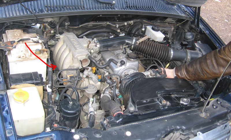 Вот старая фотка - красной стрелкой показываю место где парит и капает. Чуть пониже и поглубже стрелки.... Эскизы прикрепленных изображений -------------------- 1994 8 кл. Спортивный руль и 2 желтых брызговика СПАРКО!