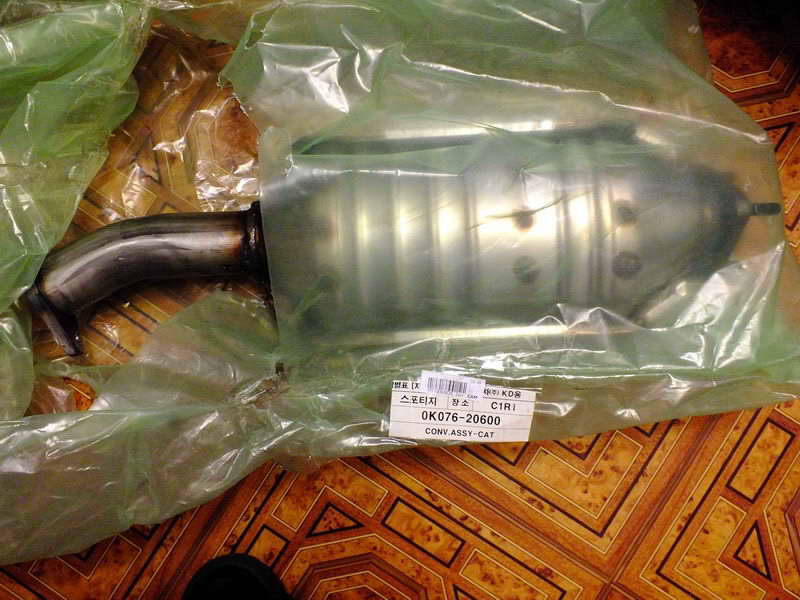 ПРивезли мне мой катализатор и приемную трубу! Катализатор (0K076 20 600 (Emission EC 1996)) [7350 рублей (семь тысяч!) ] оригинал: Приемная труба с гофрой (0K076 40 500) [всего 749 !!!!!! рублей!!! (семьсот сорок девять) Передний фланец приемной трубы: Задний фланец приемной трубы: На вид - именно то, что надо. А вот все предыдущие три раза приходили не те и стоили от трех до шести тысяч! В общем, те, у кого Автоторовские машины под Евро-2 последних годов выпуска (2004-2006)могут заказывать эти детали. Ну и прокладки на фланцы - 0K011 40 305 - две штуки. Да! внутри катализатора, на сотах, нанесен код К080 6А01. Это, видимо, код самой сотовой сборки катализатора... -------------------- Mitsubishi Pajero Sport. 3.2d, SS, 2008. синий. лифт подвески +40мм. бокс на крыше.