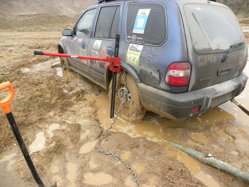 Поехал, понимаешь, за песочком День с самого утра не задался. Уже за Истрой, на заправке, обнаружил, что выехал без единого рубля денег. Ну, заправился по кредитке. Потом попилил в Волоколамск, искать банкомат. Первый обнаруженный, сбербанковский - "временно не работал" Поехал в Сычево, на ГОК. Цель, собственно, была - взвесить машину, желательно морду и корму отдельно, чтобы определить нагрузку на оси. Да вот тетки на весах на этот раз попались какие-то несговорчивые.... и денег предлагал - ни в какую. Нельзя и все тут. Ну, чтобы совсем уж напрасно не ездить, поехал в карьер, чтобы набрать малость песка с камнями - в ракушку насыпать .... Результат - более 4-х часов земляных и такелажных работ по вызволению Спортяги из плена зыбучих песков Сычевских карьеров Решил немного сократить путь ... на заднем плане виднеется колесо от БЕЛАЗа, за которое я сначала лебедился .... ... позже это колесо сорвалось ипоползло вниз .... А вокруг - ни души .... За 4 часа только один УАЗ рыбаков вдалеке прополз ... да под конец мужик на велосипеде проехал... Он помог закопать запаску. Основной результат дало поднятие всех четырех колес Хай-джеком Причем, в качестве опоры на зыбучих жидких песках использовался ... мангал "в упаковке" Проверено! можно использовать! Причем, как выяснилось позже, уже дома, мангал остался в работоспособном состоянии ... его можно собрать и использовать по назначению. А вот и запаска, за которую лебедился, зацепившись и натянув динамическую стропу. После всех подготовительных работ машина выскочила назад аки посуху.... Потом пришлось долго кататься по луже туда-сюда, чтобы вымыть песок из тормозных барабанов... На обратном пути был полный сюрреализм. Упал такой густой туман, что видимость сократилась метров до ста.... а может и меньше.. От люстру на крыше не было никакого проку - кругом стена тумана. И если бы не было в навигаторе спутниковой карты карьеров со старыми треками и реально существующими дорогами и колеями - плутал бы я там до-о-олго. Шел буквально - "по приборам" Из реальных потерь - порезаное левое заднее колесо, которое держалось до понедельника. А в понедельник, по дороге на работу - корд лопнул. Хорошо что в выходные поленился снять запаску с крыши, так и поехал на работу. В общем, поменял колесо на тротуаре около м. "Октябрьское поле". В общем, спина болит, руки болят, ноги болят, колесо пробито З.Ы. А вообще, интересное ощущение - стоишь около машины и понимаешь, что помощи не будет ... и тишина вокруг ... нет, ТИШИНА. ПОЛНАЯ. Звенящая такая. ... и сумерки .. и туман сгущается... Весело, в общем. А мораль сей басни известна: - Не зная броду - не суйся.. ну и пара сапог в багажнике, а также, лопата, стропа, трос, лебедка, шаклы, хай-джек и опора для него никогда лишними не бывают. В общем размял кости!!!Ни фига себе....!!!Сочувствую по усталости,но рскалбас есть раскалбас,без этого никуда не денешься -------------------- Мой тел.8-905-716-57-75 Роман