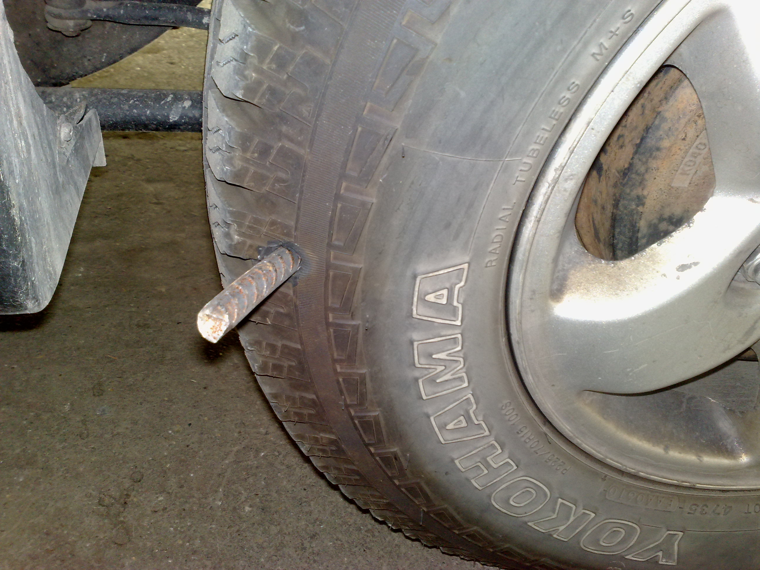 Вчерась словил в заднее колесо вот-такой кусочек арматуры, хорошо в 50 метрах от шиномонтажа. взяли с меня за кордовую заплатку 1 килорубль. Претендую на самую большую "занозу"!