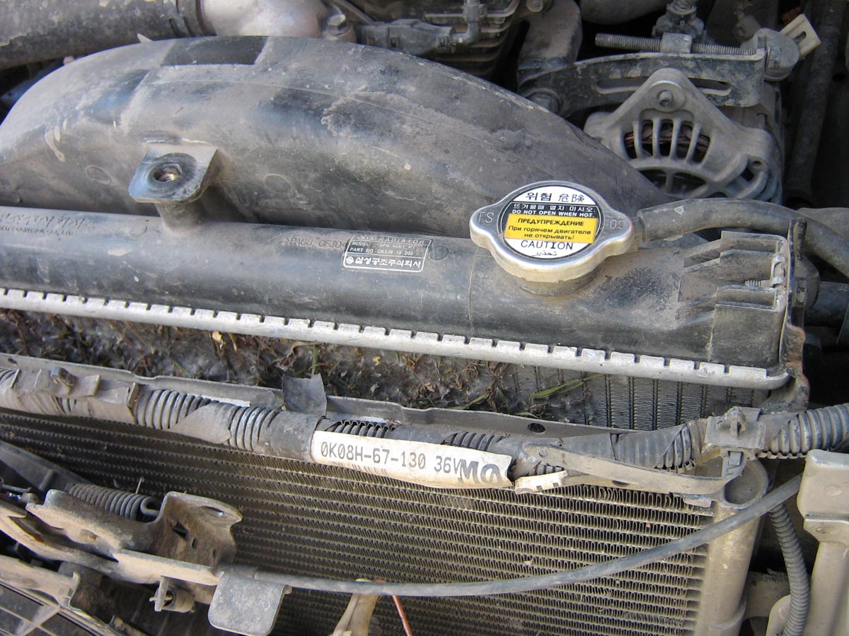 Начала перегреваться на холостом ходу (и с кондеем и без кондея). Сегодня не поленился, разобрал пол. морды, долез в пространство между радиаторами - а там пух, листва, трава и веточки. Приделал изолентой зубную щётку к палочке и энтим девайсом + дул компрессором убрал всё лишнее из межрадиаторного пространства. До кучи долил пол.литра Тосола. И заменил на самодельную левую опору радиаторов (родная развалилась напополам). И вычистил грязь (довольно много) с подвески, с защиты, с рычагов. Зачистил тормозные цилиндры с наружи от грязевой корки. Было очень много грязи с последних покатушек "Весна 2010. Ориентиров.нет". Защиту в одном месте прямил ломом. Лениво было снимать. Фото "неправильного" пуха прилагается.