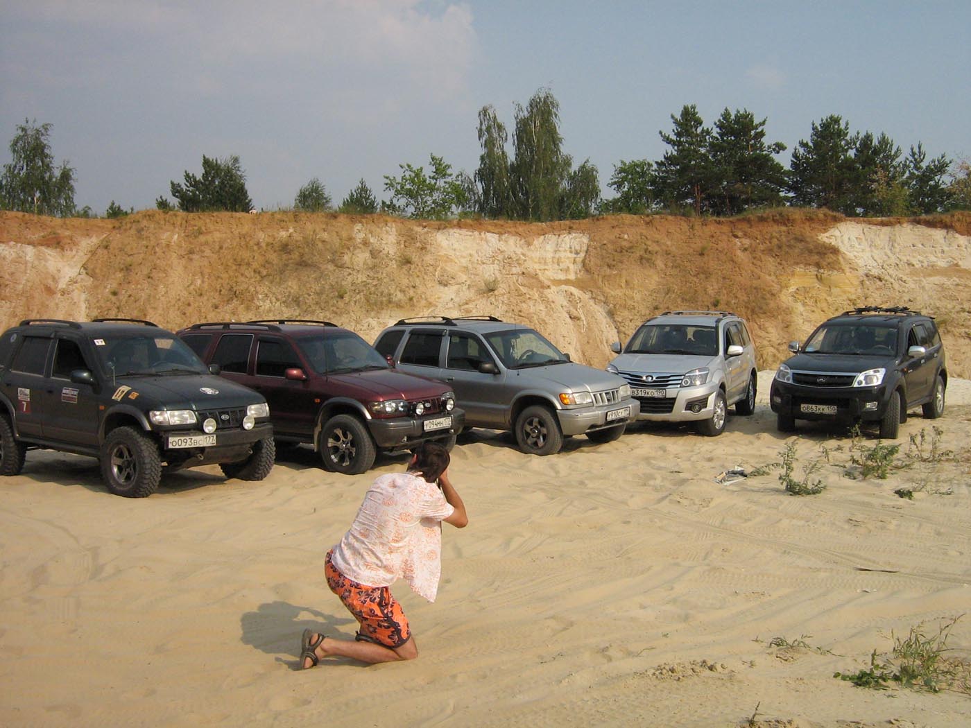 ОТЧЕТ!!! ОТЧЕТ!!!! ОТЧЕТ!!!! Ну что могу сказать... Посрамить китаёзу не удалось. Когда волнение улеглось и всех вытащили из карьера рывковым тросом и Артёмом (ghost) - все приспустили баллоны до 1 - 1,5 Атм. и тут начался парад. Все подъёмы были пройдены, пируэты выписаны. На стену заезжали и передом и задом. Ребята из "За рулём" неприрывно вели съёмку - все показали класс и полное взаимопонимание. Мне и штурману Катюне всё очень понравилось. Всем огромный респект за участие и поддержку. Дену - за качественное мероприятие. Потом все поехали купаться - благо вода в 100 метрах. Потом по домам. -------------------- Sportаge 2005, гранд, МКПП, бензин, 128 л/с, 16 кл. Калининград, лето - BFGoodrich All Terrain - T/A LT215/75/15 KO2, зима Marshal- KC 11 215/75/15, шиповка, всё на нивской штамповке, стальное брюхо 4 мм из 4 частей, силовой передний бампер, хай-джек, лифт-мейт, хабы - болтики "а-ля Тамбов".