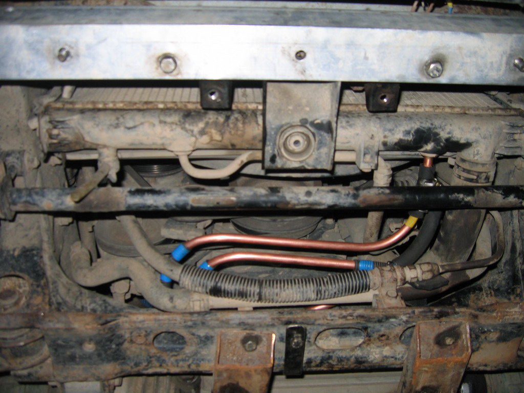 Тема конечно давно ушла в историю, но на всякий случай свой вариант модернизации этих трубок выложу. Может кому пригодится - благо делов на 30 мин. После того как самопальной защитой помял этот змеевик а вешать защиту ниже крайне не хотелось следал следующее: взял медную трубку из ближайшего хоз магазина и согнул ее под нужные размеры. В итоге - до сих пор полет нормальный Год ездил совсем без этого змеевика. Потом попрсил Мишку и Стаса его восстановить медяхой, но убрать из-под балки - сейчас он живет перед радиатором кондиционера за радиаторной решеткой, рядом с вентилятором кондея. -------------------- Ротор поля наподобие дивергентсии градуирует себя вдоль спина и там, внутре, обращает материю вопроса в спиритуальные електрические вихри, из коих и возникает синекдоха отвечания.