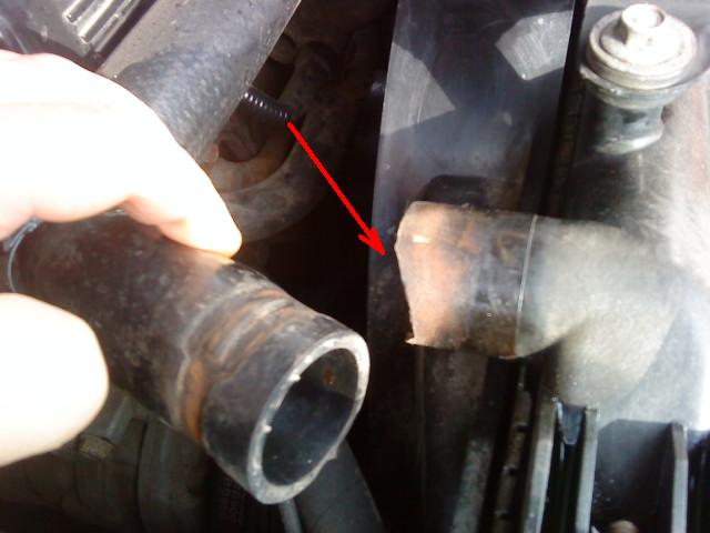Вот, блин, не ожидал такой засады - сползает со своего места верхний патрубок, по которому ОЖ течет в радиатор.