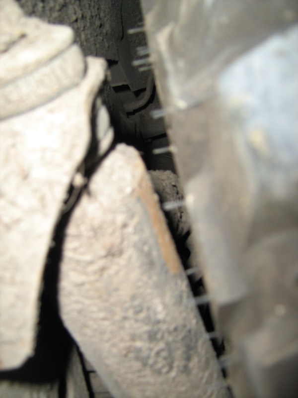 Способ проверки очень простой - заезжаем в кувет и ловим там дагоналку примерно вот так... Хочу заметить что даже этот способ, не самый лучший для проверки влазит колесо в арку или нет. При правильно работающей подвеске в динамике велика вероятность что подвеска пробьется до отбойника. поэтому знающие джиперы проводят проверку следующим способом. Снимают пружину ставят колеса и садят машину на отбойники. Потом вращают колеса в разные стороны и смотрят задевает или нет. Вариант что поставим жесткие пружины и подвеска никогда в жизни не сожмется до отбойника - является антиджиперским, и годится только для того что-бы попонтоваться не съезжая с асфальта. Поскольку этим самым мы ограничиваем ходы подвески, что неминуемо ведет к застреванию на безобидных кочках. Между задним амортизатором и шиной, при полностью сжатой подвеске, остается где то пол пальца. На амортизаторе видно ржавое пятно, это слет от задевания 29" резины на родных дисках. А вот так выглядит переднее колесо в арке при сжатой подвеске. Вращаем руль сначала в одну сторону, видим, что колесо ни за что не задевает, на ребре брызговика еще видны следы от задевания этой-же резины но на дисках с вылетом ЕТ-12 Вращаем руль в противоположную сторону и видим, что и за бампер тоже не задевает. На выступе локера так же следы от задевания 30" резины на дисках с большим вылетом. -------------------- 1995 г.в., 2.0 DOHC, 5МКПП, лифт подвески 2", Мудричи КМ2 31"