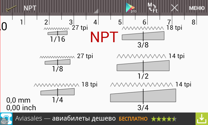 А поподробнее, ПжЛСТА! Неужля андроид уже и резбы определяет на раз?????????)))))))))))) Не верю! Но как справочник - наверняка поможет! --- Самое важное понимать основные параметры резьб, а их не так уж и много, и по ним любой( не блондинка) способен безо всяких резьбомеров определить (Нормальный штангенциркуль, или колумбус НУЖЕН!, с точностью хоть 0,1мм)! А тем более Андроид в помощь (пока только как справочник). Thread Pich Показывает метрическую, коническую, дюймовую резьбу. А в платной версии еще какие то функции. Эскизы прикрепленных изображений -------------------- |