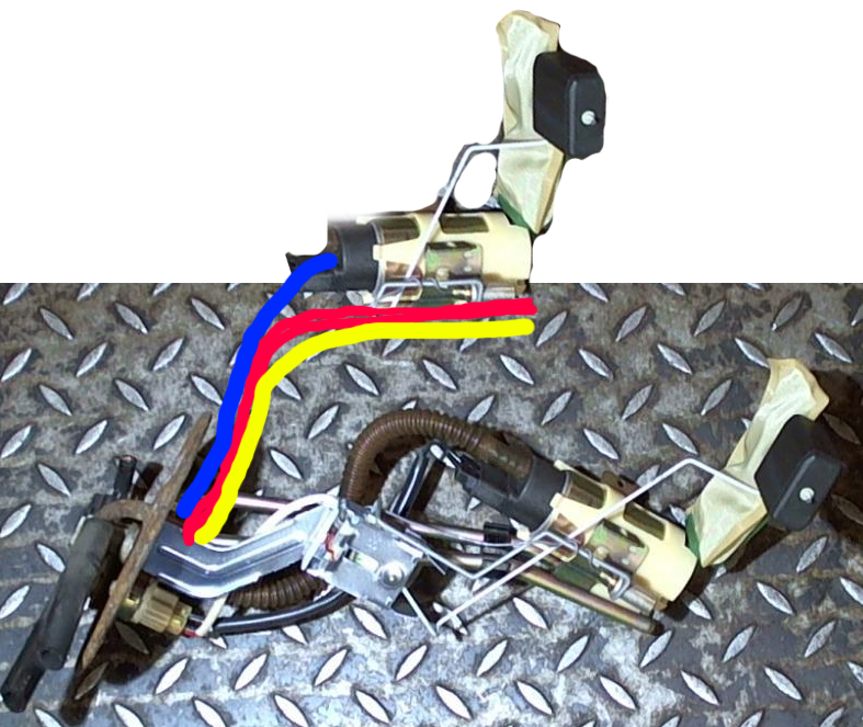 Крышка у меня - как на фото (фото не мое). Только один нюанс - там еще есть дырка под датчик, который идет вроде на экологию и много у кого ломается (лечится спайкой 3-х резисторов вроде). Бак - так же как на фото (фото не мое) - точно такой же стакан. И последнее - попытался нарисовать в фотошопе - какая сборка у меня: красная линия - кронштейн крепления бензонасоса. синяя линия - на бензонасос. желтая линия - обратка. т.е. если у всех крепление идет сразу вниз-в сторону, то у меня - в сторону - а потом "Г"-образное крепление насоса Эскизы прикрепленных изображений -------------------- Kia Sportage 1998 г.в. 2.0 DOHC, 16 клапанов, 128 л.с. автомат, Канадец.