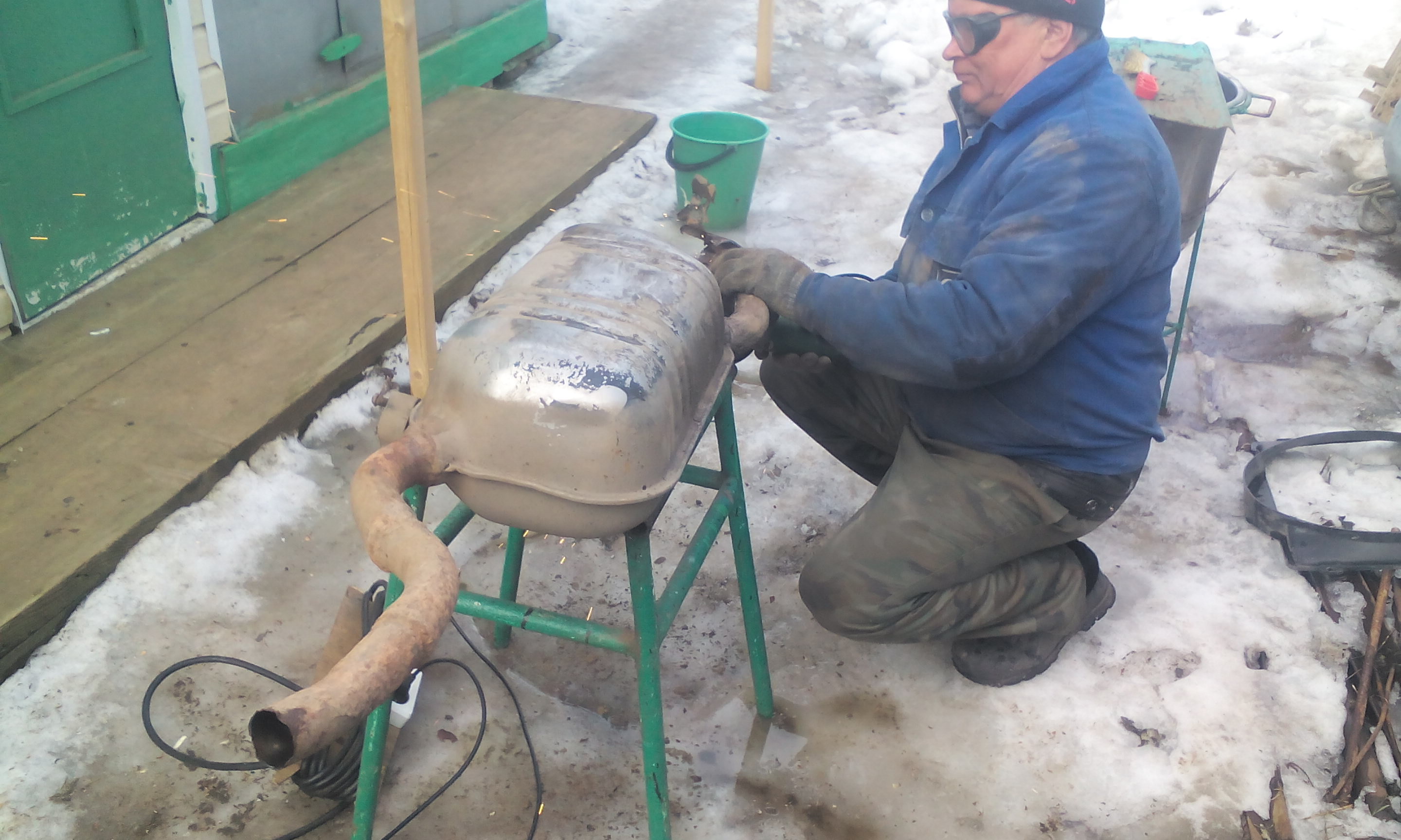 на днях сломалась труба, а по трассе еще и камень в радиатор угодил, радиатор запаяли, пока я ставил, отец уже ковырялся с глушителем новый "тройник" и недостающую выхлопную трубу сварили из водопроводной трубы внутренним диаметром около 45мм -------------------- |
