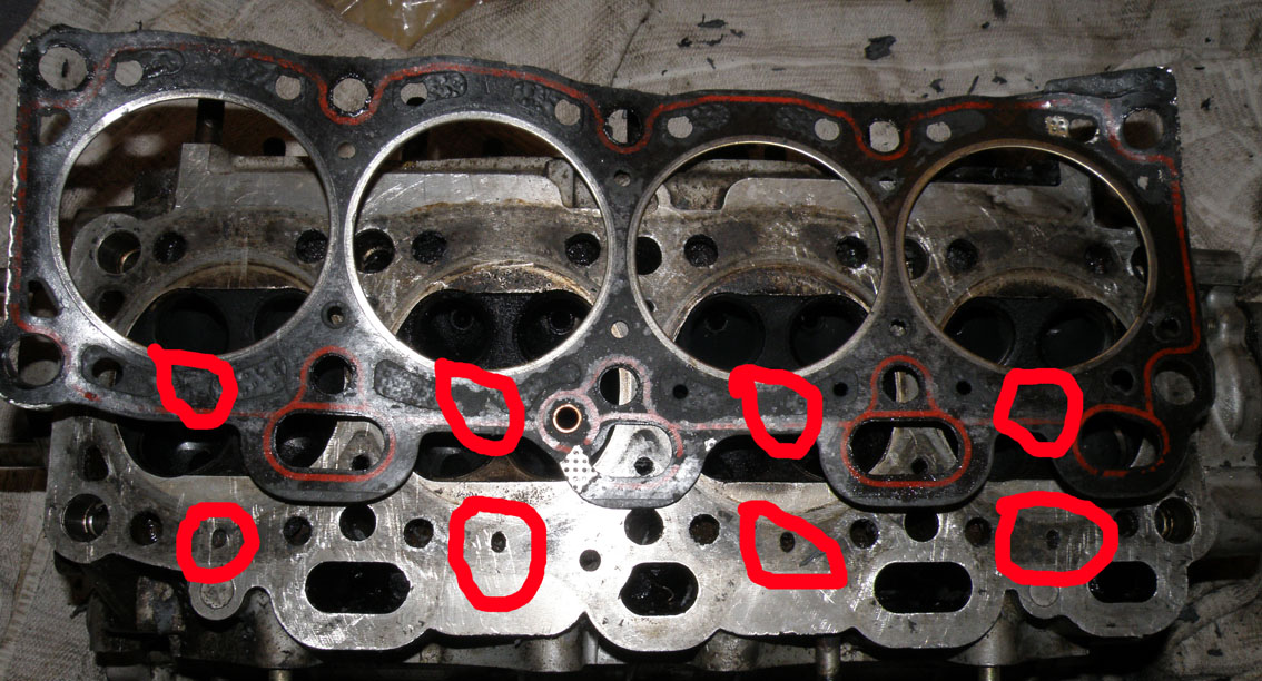 Подскажите вопрос. В общем. как и говорил - на первом цилиндре впускная направляющая треснута. Покажу фото. И еще вопрос.... Интересная прокладка у меня. На Головке отверстия есть, а на прокладке нету..... Это так должно и быть, или прокладка немного не та??? Эскизы прикрепленных изображений -------------------- Kia Sportage 1998 г.в. 2.0 DOHC, 16 клапанов, 128 л.с. автомат, Канадец.