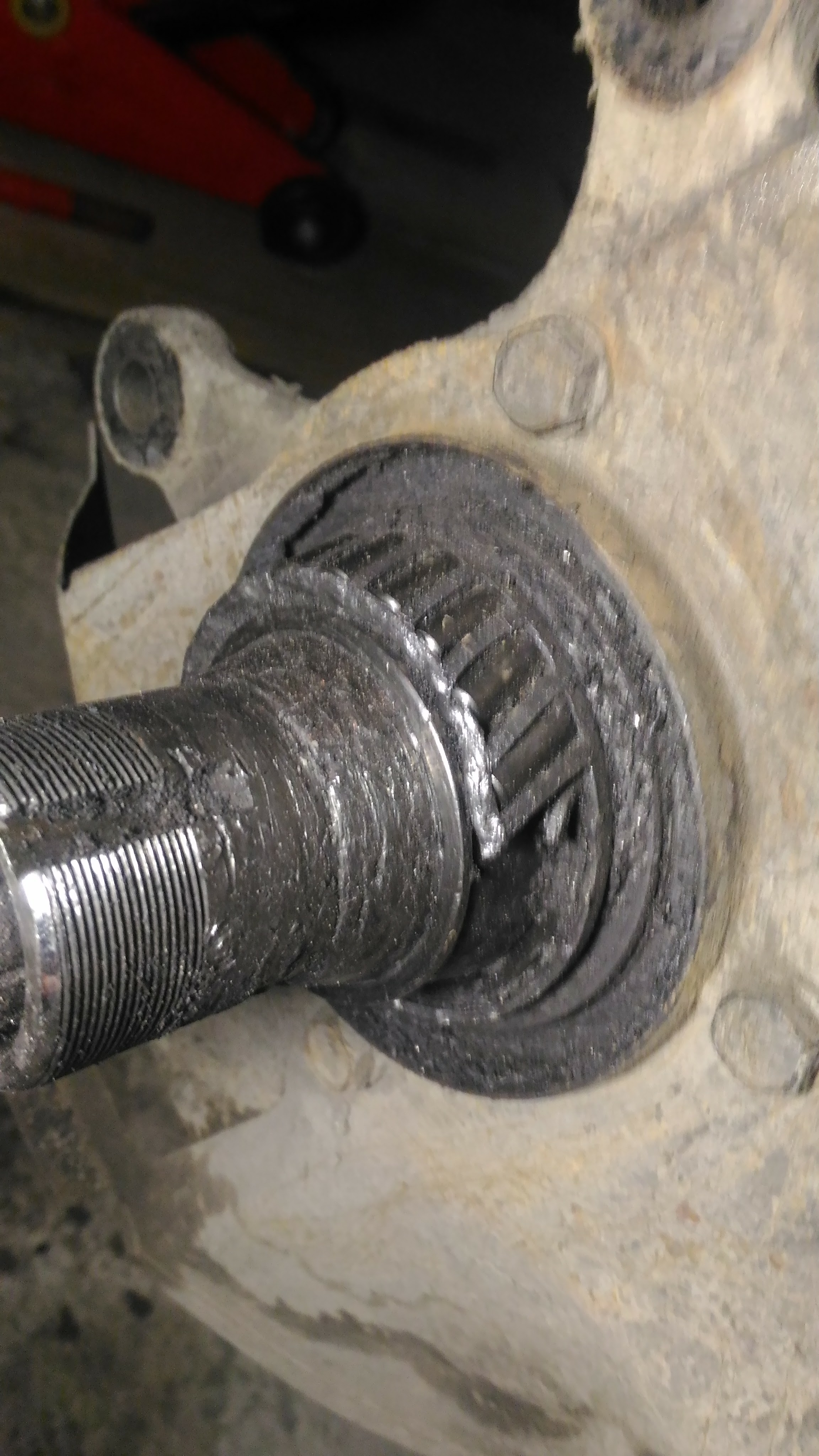 Ехал по трассе. Вдруг удары в переднем мосту. Увод авто в право. Развернулся и домой, 50 км за 2,5 часа, в колесе удары скрежет, временами правое переднее явно тормозило само. Вскрытие. Из 2х ступичных нашел только 0,5 подшипника, зато много кусочков железа. ступичная шайба вывалилась сразу, гайку долго и нудно скручивал зубилом. Мне одному кажется, что ехать без подшипников было плохой идеей? Посадочные под обоймы подшипников целы ли? Внутренние обоймы от руки снялись, или выстукивать с цапфы пришлось? Если снялись от руки - попадалово еще и на поворотный кулак. То же самое со ступицей... -------------------- Ротор поля наподобие дивергентсии градуирует себя вдоль спина и там, внутре, обращает материю вопроса в спиритуальные електрические вихри, из коих и возникает синекдоха отвечания.
