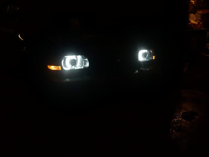 Результат ..... Афффигеть! Как я раньше два года ездил???? С включенным ближним: А это теперь у меня такие "габариты" Светотеневая граница ближнего: Как говорится - "Комментарии излишни" Вокруг модулей приделал "ангельские глазки" из светодиодных лент. Причем, светодиоды "направленного действия. . Вот как ЭТО впотьмах выглядит ... В общем, по городу могу теперь ездить вообще без ближнего От этих светодиодов свет такой, как от стандартных фар, заляпанных жижей с дороги -------------------- Mitsubishi Pajero Sport. 3.2d, SS, 2008. синий. лифт подвески +40мм. бокс на крыше.