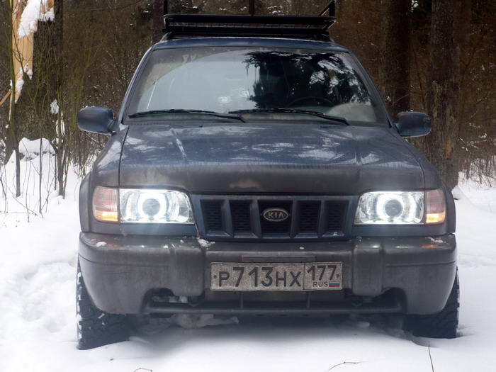 Результат ..... Афффигеть! Как я раньше два года ездил???? С включенным ближним: А это теперь у меня такие "габариты" Светотеневая граница ближнего: Как говорится - "Комментарии излишни" Вокруг модулей приделал "ангельские глазки" из светодиодных лент. Причем, светодиоды "направленного действия. . Вот как ЭТО впотьмах выглядит ... В общем, по городу могу теперь ездить вообще без ближнего От этих светодиодов свет такой, как от стандартных фар, заляпанных жижей с дороги -------------------- Mitsubishi Pajero Sport. 3.2d, SS, 2008. синий. лифт подвески +40мм. бокс на крыше.
