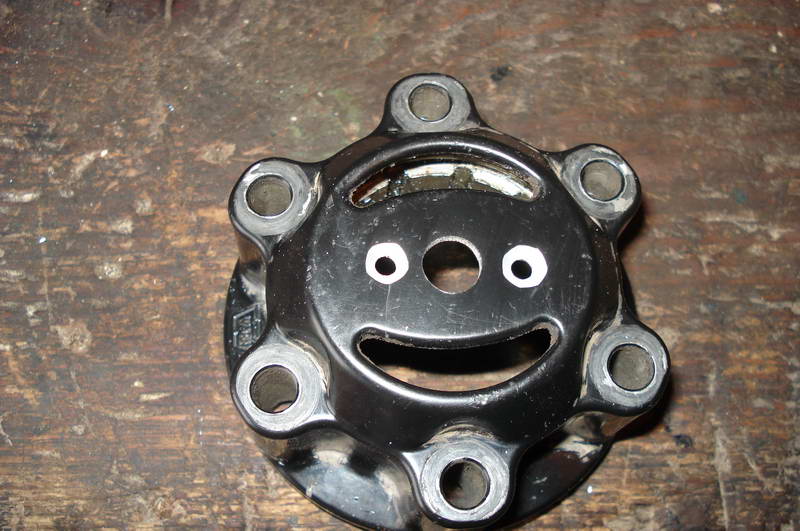 Разобрал все по гайкам. Кстати, вторая деталь справа - это керамический фильтр, про который меня спрашивали. Почему-то не все знают, что там есть фильтр. Для того, чтобы разобрать хаб нужно снять стопорное кольцо, вынуть шестеренки с пружинами и пластмассовый колпачок. Вынуть оставшуюся деталь с множеством пластмассовых лепестков не трудно. Я где-то встречал в форуме, что это гимор. Никакого гимора тут нет. Для того, чтобы снять эту деталь, вставляешь отвертку в паз напротив каждой защелки и осторожно отжимаешь всю деталь внутрь до щелчка. Щелчок - это лепесток вышел из зацепления с корпусом. И так по кругу, пока все лепестки не освободятся. Потом аккуратно тупой палочкой нажимаем на фильтр через окно в наружней стенке хаба, можно немного постучать молоточком, только немного. И все остальные детали, включая фильтр выйдут из корпуса. Вот пустой корпус: Вместо выброшенного фильтра я поставил выточенную деталь: Для этого в корпусе просверлил 3 отверстия Деталь закрепил двумя потайными болтиками М3 Теперь включение хаба будет осуществляться вворачиванием в центральное отверстие болта М6. Для того, чтобы этот болт не порвал резиновую диафрагму, на нее наклеена алюминиевая пластина толщиной 0.5 мм. После этого я собрал хаб как обычно, отрезал болтики нужной длины. 2 длинных - хаб заблокирован и два коротких - хаб отключен. На коротких сделал ножовкой пропил, чтобы было видно снаружи, включен хаб или нет. И поставил все на место. Все, можно лезть в грязь. В принципе в хабе ничего не изменено и он может продолжать работать ваккумным, но для правильной его работы нужно сообщение внутренней полости с атмосферой. Раньше для этого стоял керамический фильтр, теперь его нет, но можно например ввернуть болтик с отверстием или вместо него закрыть отверстие пористым материалом типа поролона. -------------------- |