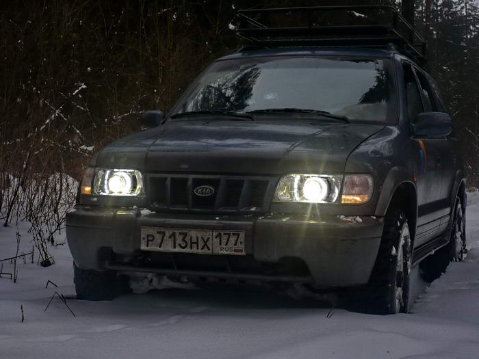 Результат ..... Афффигеть! Как я раньше два года ездил???? С включенным ближним: А это теперь у меня такие "габариты" Светотеневая граница ближнего: Как говорится - "Комментарии излишни" Вокруг модулей приделал "ангельские глазки" из светодиодных лент. Причем, светодиоды "направленного действия. . Вот как ЭТО впотьмах выглядит ... В общем, по городу могу теперь ездить вообще без ближнего От этих светодиодов свет такой, как от стандартных фар, заляпанных жижей с дороги -------------------- Mitsubishi Pajero Sport. 3.2d, SS, 2008. синий. лифт подвески +40мм. бокс на крыше.
