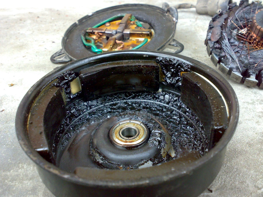 Обычный 8-шный мотор с крыльчаткой.... 700 руб. Пришлось подрезать крыльчатку, центр вырезать в корпусе и закрепить саморезами к ушкам вентилятора... И конечно поменять полярность, чтобы дуло в нужную сторону... Итог: В пробках, поле и т.д. больше шум основного вентилятора ни разу не слышал, т.к. энтот зверь со всем справляется Думаю сделать для него отдельную кнопочку Если можно, то поподробнее про переделку крыльчатки моторчика от 8-ки, потому как тоже решил брать наше производство. В июле 2009 г. купил родной новый вентилятор кондея на Ферганской, отдал 3800 наших деревянных, а в январе 2010 г. он уже не фурычил. Сегодня его разобрал и увидел вот чего: Сейчас поеду на Южный порт посмотрю цену, на моторчики от 8-ки. Только учти, что купив оригинальный вентилятор ты о проблеме забудешь. Поставив что-то бюджетное от нашемарки обречешь себя на гимор, и в конечном итоге непонятно что выйдет дешевле. Как же так, я купил оригинал, а гемор появился через 6 месяцев - сгорел моторчик. Так может будет легче с громким моторчиком от 8-ки кататься теже 6 месяцев, но дешевле чем родной. Я очень сильно удивился, что "родной" через 6 месяцев подкинул проблем. -------------------- |