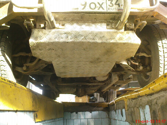 поставил такую http://www.oootrio.ru/contacts 01003-01020- за все отдал 4 рубля установка 1,5 полет нормальный Я таких фото не видел. Хорошо сделано. Моя - как брат близнец, это радует. Только из холодно катанного листа (он пожосче). И дырочек вентиляционных у меня поменьше и диаметр у них 10 мм (большего сверла дрель не берёт). И стоимость изготовления - 90 руб. (3 круга на болгарку). Установка в процессе изготовления - 58 руб (2 бут. пива). Итого - 148 руб. -------------------- Sportаge 2005, гранд, МКПП, бензин, 128 л/с, 16 кл. Калининград, лето - BFGoodrich All Terrain - T/A LT215/75/15 KO2, зима Marshal- KC 11 215/75/15, шиповка, всё на нивской штамповке, стальное брюхо 4 мм из 4 частей, силовой передний бампер, хай-джек, лифт-мейт, хабы - болтики "а-ля Тамбов".