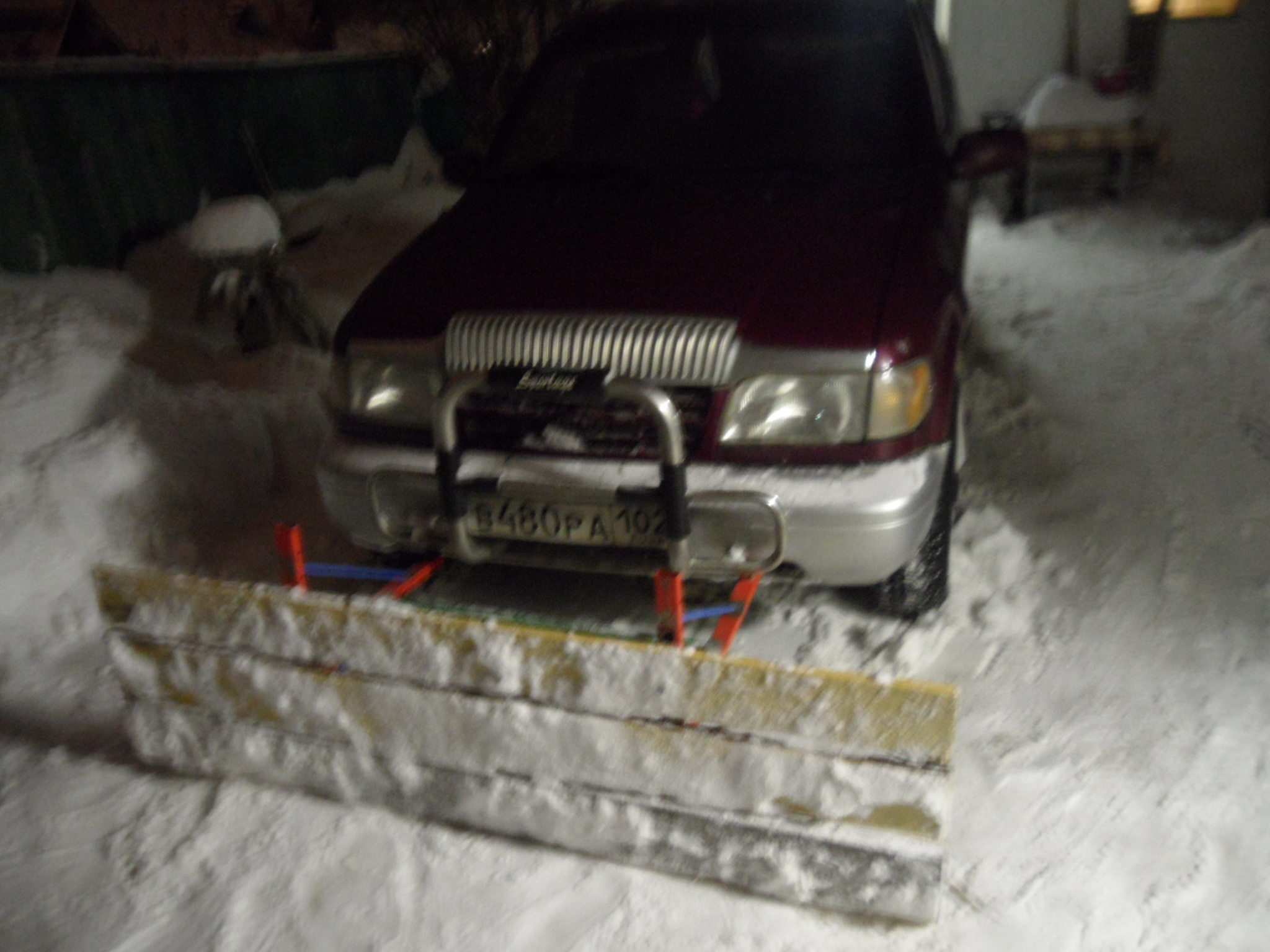 нет, оставить машину дома а самому на лижи встать!!!! если есть лопата, то даже полный привод не нужен Да и колесы то же... Если цепи ставить только назад, то значит нельзя включать полный привод? Ведь скорость вращения осей будет разная... Можно поподробней, с чертежами? Или это ты скамейку так приспособил? А если сделать отвал такой формы - /\? А скамейку у соседа скоммуниздил! Только я переборщил с "облегчением", правую продольную маленько согнул,надо усиливать. Правда под конец я начал рысачить, а под снегом ледяные кочки и колеи, да и снег пытался затолкнуть за бруствестр который грейдер оставил на "большой дороге" -------------------- KIA Sportage Grand бензин, 128 л.с 2001 г. Калининград. (USA)