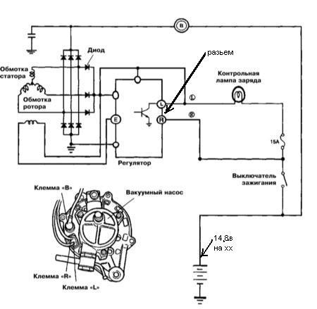 И напряжение доходило до 17 вольт? Происходит то, о чем говорили в этой теме выше - самовозбуждение генератора на повышенных оборотах от остаточной намагниченности якоря, без подачи напряжения через лампочку. Этот разъем отсоединить, все равно что лампочку выкрутить. Но напряжение не стабилизировано по причине неисправности регулятора. -------------------- Был 98г. 2.0 DOHC, бензин, МКПП