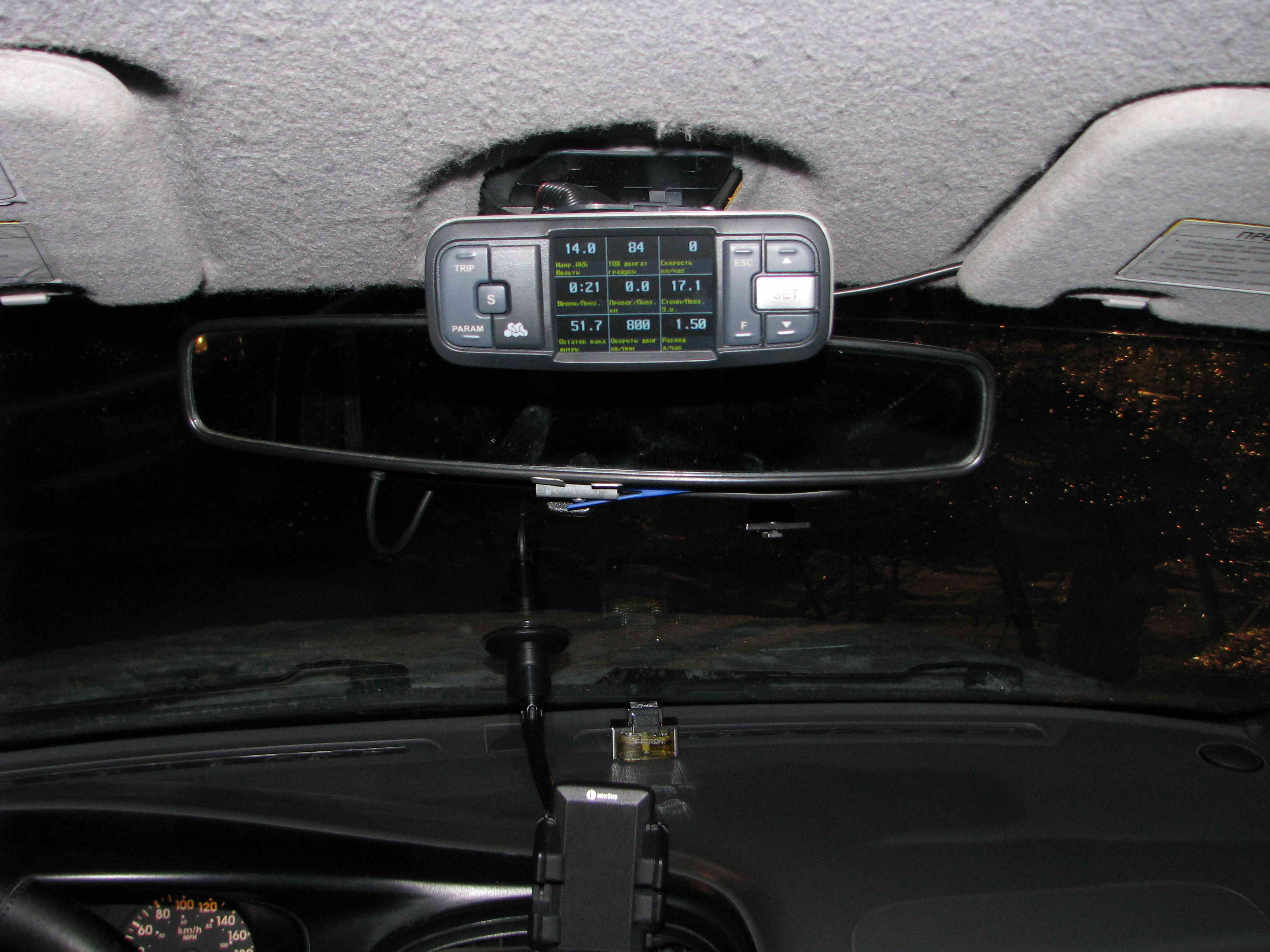 Поставил Multitronics V730 (V731 такой же, но разговаривает женским голосом). Зажал под салонное зеркало заднего вида штатными винтами, убрав пластиковую заглушку зеркала и не ставил заглушку, идущую в комплекте с БК. Провод протянул под потолком, вдоль левой стойки к OBD-II под рулевую колонку. Датчик температуры провёл под уплотнителем двери в подкапотное пространство, а сам датчик разместил в районе левого габарита (В городе врёт, а по трассе нормально показывает, что мне и нужно). Установил цветовую схему №4(или №3, в общем, последнюю из предложенного списка), подсветку на минимум, не мешает ни днём ни ночью, даже на трассе. P.S. За 3 месяса использования БК два раза на грунтовках отпал глушитель, почему-то открутился один болт из защиты, раздолбало окончательно маятниковый рычаг, протерло защитой бензобак в том месте где камнем по нему ударил, а БК, даже не шелохнулся. P.S.S. Могу сфоткать, но не уверен, что получится в форум фотки вставить. Могу отправить на E-mail. ниже его фото 2томас, насколько удобно/неудобно смотреть на него? головой надо вертеть? я ранее опрометчиво предлагал вставить в солнцезащитный козырек, но шея бы быстро сломалась. Мне тоже задарили Multitronics VC730. Еще не ставил, но вариант пока только один - на место крепления зеркала. Зеркало у меня давно уже на присоске чуть ниже, а место пустует. Мне правда только подключение в универсальном режиме светит, машина старовата для OBDII. -------------------- KNAJA5535RA723210, DOHC, МКП, ЭБУ KO13