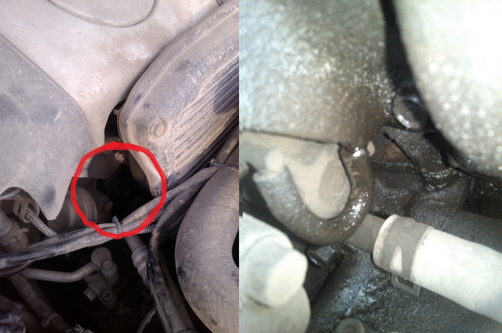 не знаю, жду пока кто из сведущих людей отпишется Судя по фото, потекла прокладка ГБЦ. -------------------- Был 98г. 2.0 DOHC, бензин, МКПП
