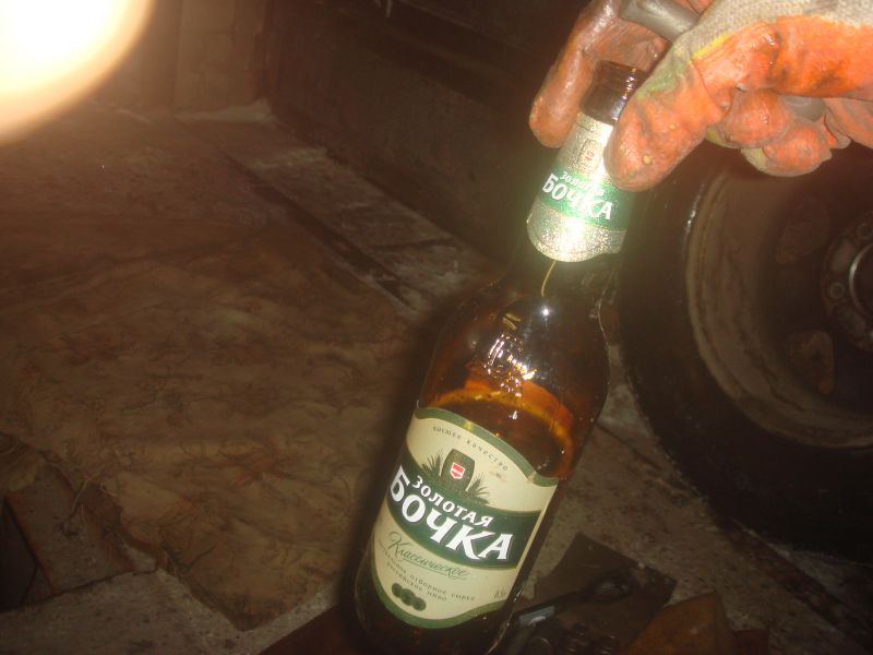 Цитата Если отпустить (но не выкручивать) четыре болта крепления нижней шаровой опоры, и подергать за цапфу (поворотный кулак), то она (он-поворотный кулак) будет смещаться за счет люфта в отверстиях нижнего рычага. Потом,когда закрутишь болты, то цапфа (пов.кулак) и нижний рычаг уже не попадут на то=же место ( цапфа-пов.кулак сместится внутрь или наружу,относительно нижнего рычага),что повлечет за собой изменение развала. ::-)975g: ИМХО имеющийся там (в отверстиях крепления шаровой) люфт не критичен для развала.. Итак - опишу полный процесс извлечения шруса - может кому поможет Прелюдия: при вылезании из говен пропал передок.. В последствии выяснилось - умер внешний шрус. Людия: Берем машину - 1 штука: Берем домкрат и инструменты - многа штукав)): Ослабляем колесные болты и домкратим колесо, после чего ставим машинку на подставку - во-первых так безопаснее, а во-вторых - домкрат нам ешо потребуецца: Снимаем колесо: Снимаем тормозной суппорт (два болта па 17) и подвязываем его так, чтоб он не висел на тормозном шланге: Снимаем муфту (6 болтов па 10) - возможно муфту проще снимать до снятия колеса ибо болты могут закиснуть и отворачивать их на незастопоренном колесе будет хлопотно..: Вынимаем из паза разрезное стопорное кольцо: Откручиваем два винта крепящие стопорную шайбу: Снимаем её: Скручиваем гайку затягивающую ступичные подшипники: Ступица готова к снятию: Снимаем её: Снимаем защиту (четыре болта по 12): Если вам не повезло и у вас вакуумные муфты, то отсоединяем вакуумный шланг: Выкручиваем стопорный болт и выбиваем из кулака верхний рычаг: Откручиваем (хоть говорят можно и не откручивать) нижнюю шаровую (4 болта по 12): Шрус свободен! (как потом выяснилось - почти свободен): Внутреннюю гранату русским методом (против лома нет приема) но аккуратно: А в вилку-то он и не пролазит!: В мануале написано - "чтобы извлечь шрус - нужно ослабить 2! верхних болта вилки.." не знаю почему у них эьих болтов 2.. у меня 4)) Нижние два выкрутил, верхние два ослабил.. Ослабил гайку крепления вилка/нижний рычаг - шрус вышел: З.ы. забыл сказать что на этом этапе нам и понадобился домкрат, чтоб упереть его в нижний рычаг и немного его приподнять иначе внутренняя граната упирается при извлечении в стойку.. Ну и вот он - виновник торжества: а внутри Вот с чего вопщем-то и началась эта тема.. Ну и послелюдия)): Хочу выразить благодарность МихаилуТ за предконсульство)) Вся работа описанная выше заняла час с перекурами)) Ну и в работе мне помогали: Пиво "Золотая бочка классическое")): и двухкиловатный обогреватель "крепыш"))): Спасибо за внимание! Продолжение следует.. Жду рекомендаций и инфы по озвученному девайсу "внешний шрус" - где этого зверька можно приобресть и можно ли? Сообщение отредактировал КСИ - Feb 8 2008, 04:42 AM -------------------- |