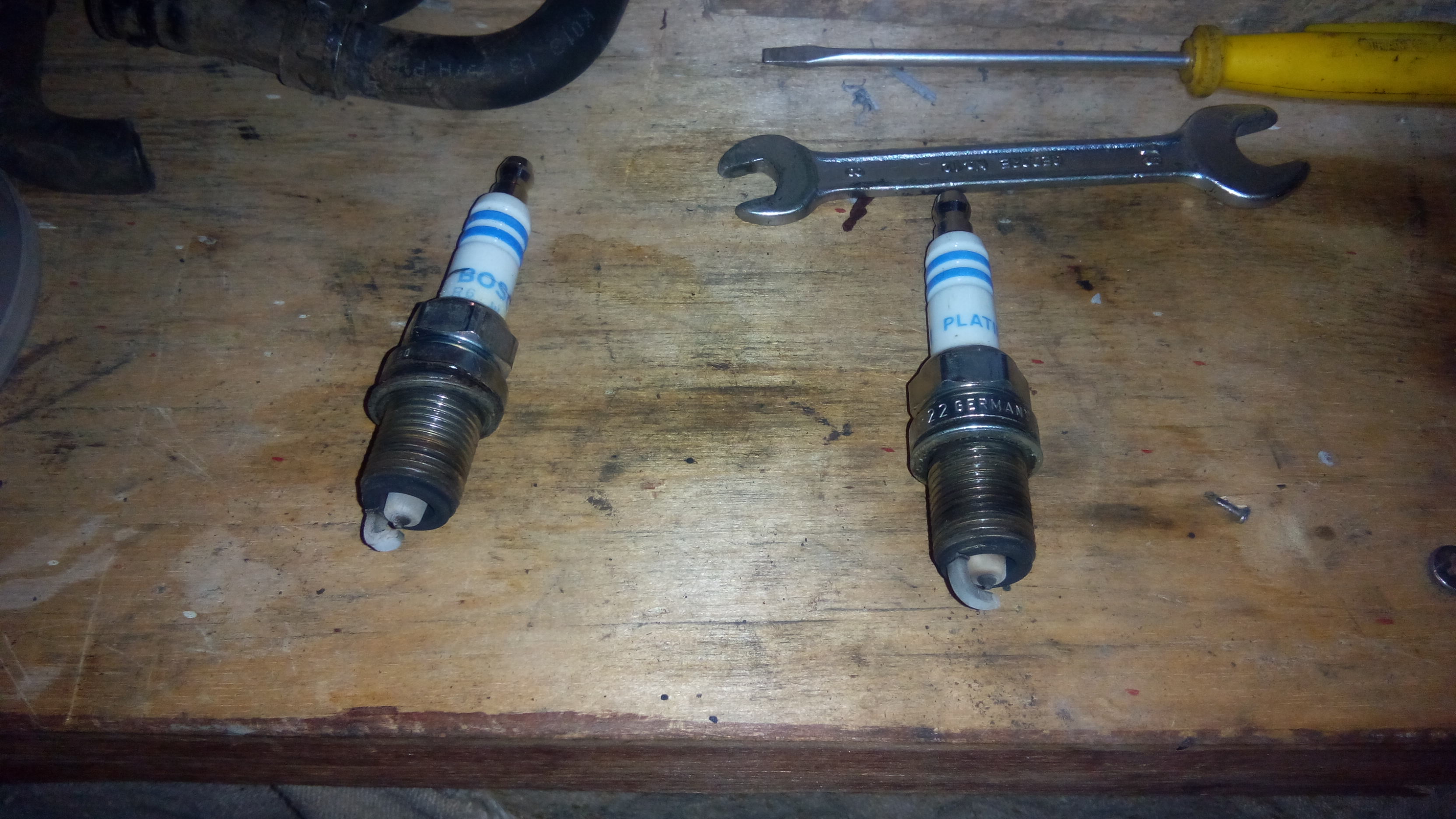 Привет. Отнес форсунки на стенд, правда стенд в обычном гараже но в инете отзывы неплохие были, ... Но что-то я не совсем доволен. Я конечно не уверен что форсы плохие ,но и стенд или мастер какой-то не профи был.... Похоже, пока не профи... Цитата Вить кстати производительность 220-240мл/мин на каких оборотах должна быть? Указанная производительность не имеет отношение к оборотам. Она измеряется на постоянно открытых форсунках с секундомером. Цитата И Стоит ли искать профессиональный стенд? Или поставить форсунки как есть..? Пока не стоит! Если они льют одинаково, то будем считать их нормальными. Цитата Свечи Бош Платинум - 1я и 3я ,которые были под катушками , они снялись легко , и на них небольшой налет светло-серого цвета: ![]() Нормальный налет! Цитата Зазор, как я помню ,на платиновых свечах не регулируется... Это почему же! Регулируется как и у обычных свечей! Цитата Паралельно пока все разобрано решил посмотреть свечи и найти скрутку-спайку в жгуте проводов... Дальше решил найти спайку проводов в жгуте ....... У меня ее нет, может машина особенная ? ![]() Похоже, она на предпоследнем и последнем фото под термоусадкой и, похоже, хорошо проварена. Цитата В общем решение моей проблемы плохой заводки затягивается, а форсунки со скруткой и бензонасосом не причем..? "Будем искать..." -------------------- Был 98г. 2.0 DOHC, бензин, МКПП