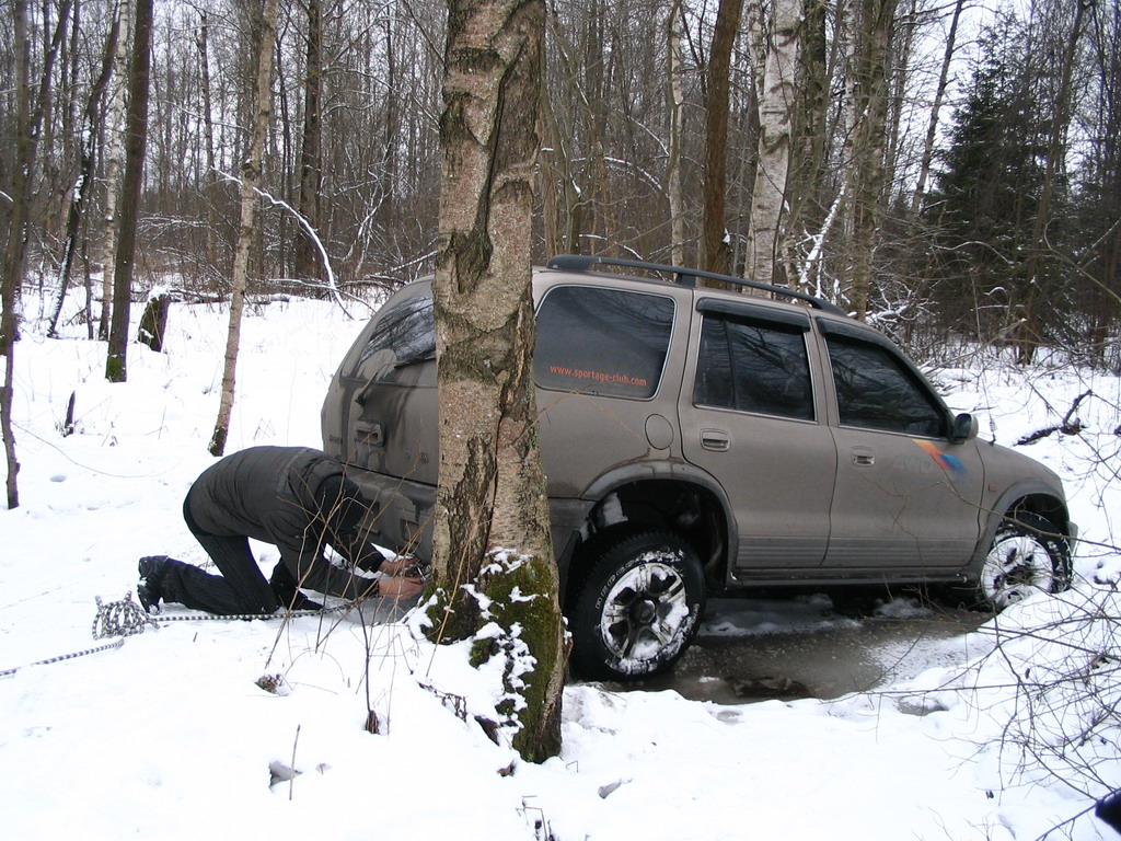 Вот еще фотки. От себя добавлю, не покупайте трос в метизах, лопаты с деревянным черенком в Ленте, и недорогие китайские гидравлические домкраты Да, и на счет лебедки. Китай, на 2 тонны, чуть чуть помогла, но не решение проблемы. Надо хайджек и хорошую лопату. Ну и трос стальной нужен для лебедки, а то стремно с капроновым, он растягивается :32a: ну неее...ребяты... http://sportage-club.com/ipb/index.php?showtopic=3000 -------------------- |