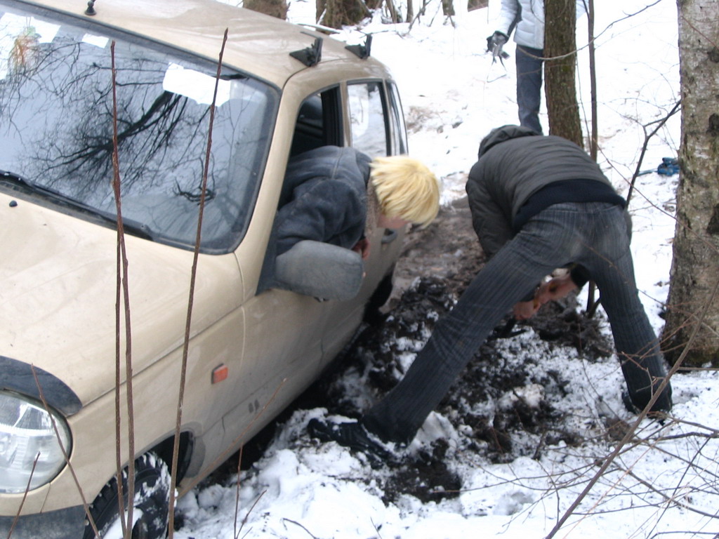 Вот еще фотки. От себя добавлю, не покупайте трос в метизах, лопаты с деревянным черенком в Ленте, и недорогие китайские гидравлические домкраты Да, и на счет лебедки. Китай, на 2 тонны, чуть чуть помогла, но не решение проблемы. Надо хайджек и хорошую лопату. Ну и трос стальной нужен для лебедки, а то стремно с капроновым, он растягивается Ну это в принципе было известно. Амишка лучше сидел,он как то глубже провалился. |