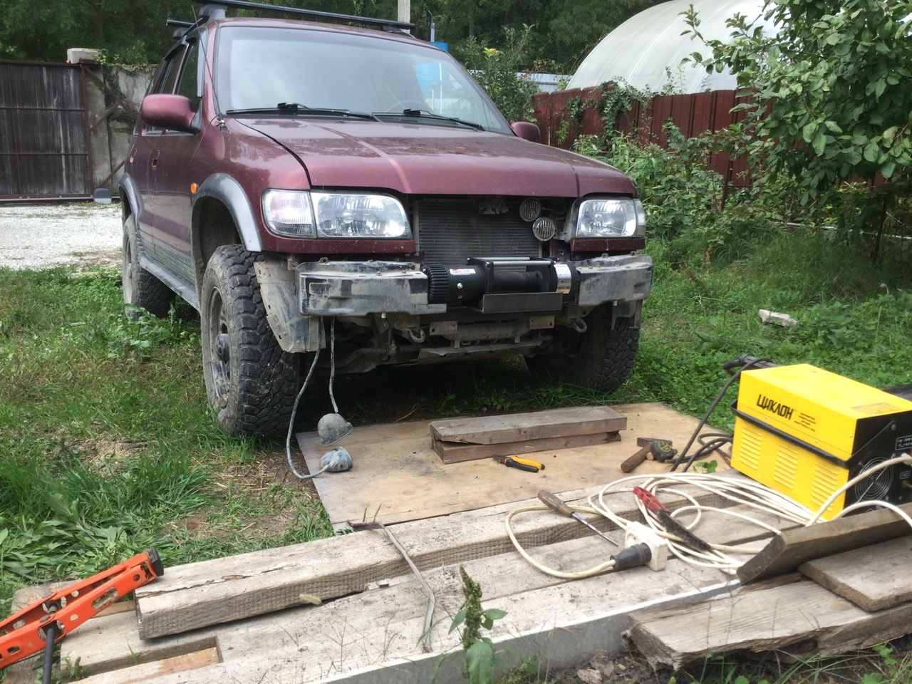 Бампера полностью разобрал и отмыл. Крепления перенес на высоту лифта вверх. Задний бампер был благополучно установлен. Когда взялся за передний всё казалось простым, мир улыбался, природа цвела и распускалась...Как же я ошибался...началось с того, что крепления бампера выстояли с разницей в сантиметр(как можно было так собрать на заводе я право не понимаю). Выпилил кусок, поправил угол кувалдометром, сварил. Дальше выяснилось, что элементы пассивной безопасности aka два куска ребристой трубы откровенно не лезут внутрь усилителя в новом положении. Отрезал. Перенес крепления, проверил на усилителе - всё входит. Собрал бампер попутно переделав фиксацию туманок, так как хотел сделать ещё пять лет назад при монтаже. Походя восстановил боковые крепления, удерживающие вертикально скорлупу от деформаций, переделал два верхних отломанных уха скорлупы на стальные, убрал погибшие в боях со временем верхние фиксаторы к кузову (кронштейны с резиновыми «катушками»). Попробовал установить, ан хер. С проставками в 30 мм буксировочные проушины попадают ровнехонько в нижнюю часть бампера. Пилить бампер не хотелось, отболгарил проушины вровень с наиболее выступающей частью рамы, убрал остатки профиля на который они были приварены. Бампер встал как влитой. Замерил новое положение проушин, прихватил. Осталось скинуть бампер, полностью обварить и можно собирать. -------------------- |