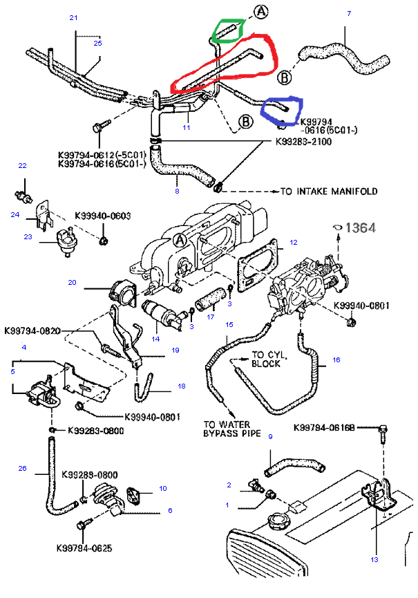 А откуда она у тебя выходит? У меня, например, такой вообще нет. отметил эту трубку красным. которую я не могу наити куда воткнуть. на схеме так же отметил еще две трубки. зеленую и синюю. им я нашел место. на втором фото я так же пометил цветом куда они у меня воткнуты. и на третьем фото сама трубка которая бесхозная. Эскизы прикрепленных изображений ![]() ![]() ![]() -------------------- все приключения на. ж.... у начинаются со слов я знаю короткую дорогу.