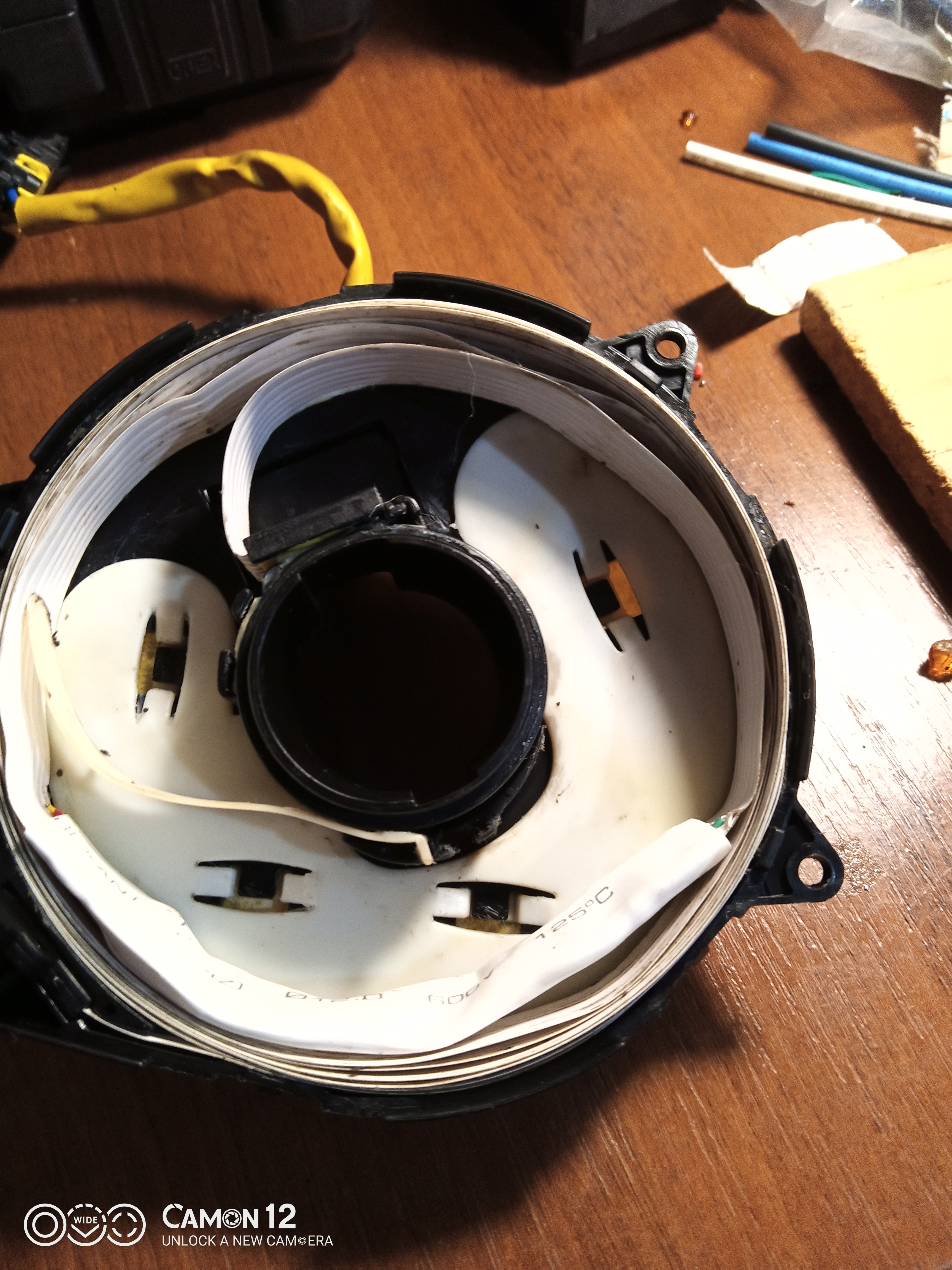 Там стоит улитка. Она прикручена к подрулевому переключателю. В ней шлейф. Как раз сигнал и аирбек