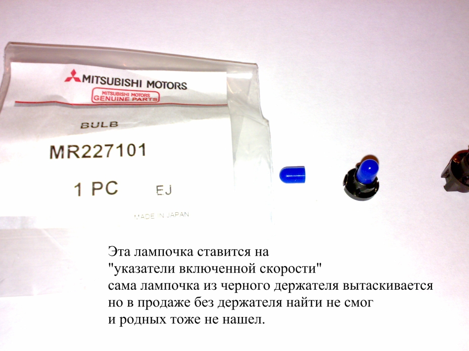 Ну парни вы и даете, видно не ездили на наше авто и дремучих иномарках, лампочки....в любом маг. автозапчастей стоЮть муку В подсветке печки, обычные лампочки с усиками (цена 3р , я покупал у себя в поселке) вставляются в черную обойму (как на фото с мицубишевским пакетиком) чтобы поменять ныжна плоская отвертка, что бы подцепить панель, у меня времени заняло минут 5 с покумкой лампочек и без плоской отвертки. А лампочка D и еще какие то и у меня не горят, фигня поменяю, зато чек почти всегда гроит Сори у меня другая панелька, ну я думаю сути не меняет. В фару лампочку вообще с мотоцикла скрутил один хр ЗЫ: О!!! а давайте я вам Хондовые лампочки продам -------------------- KIA Sportage 2л. DOHC 131л.с., ГБО, АКПП, 2001г.в. Америкос