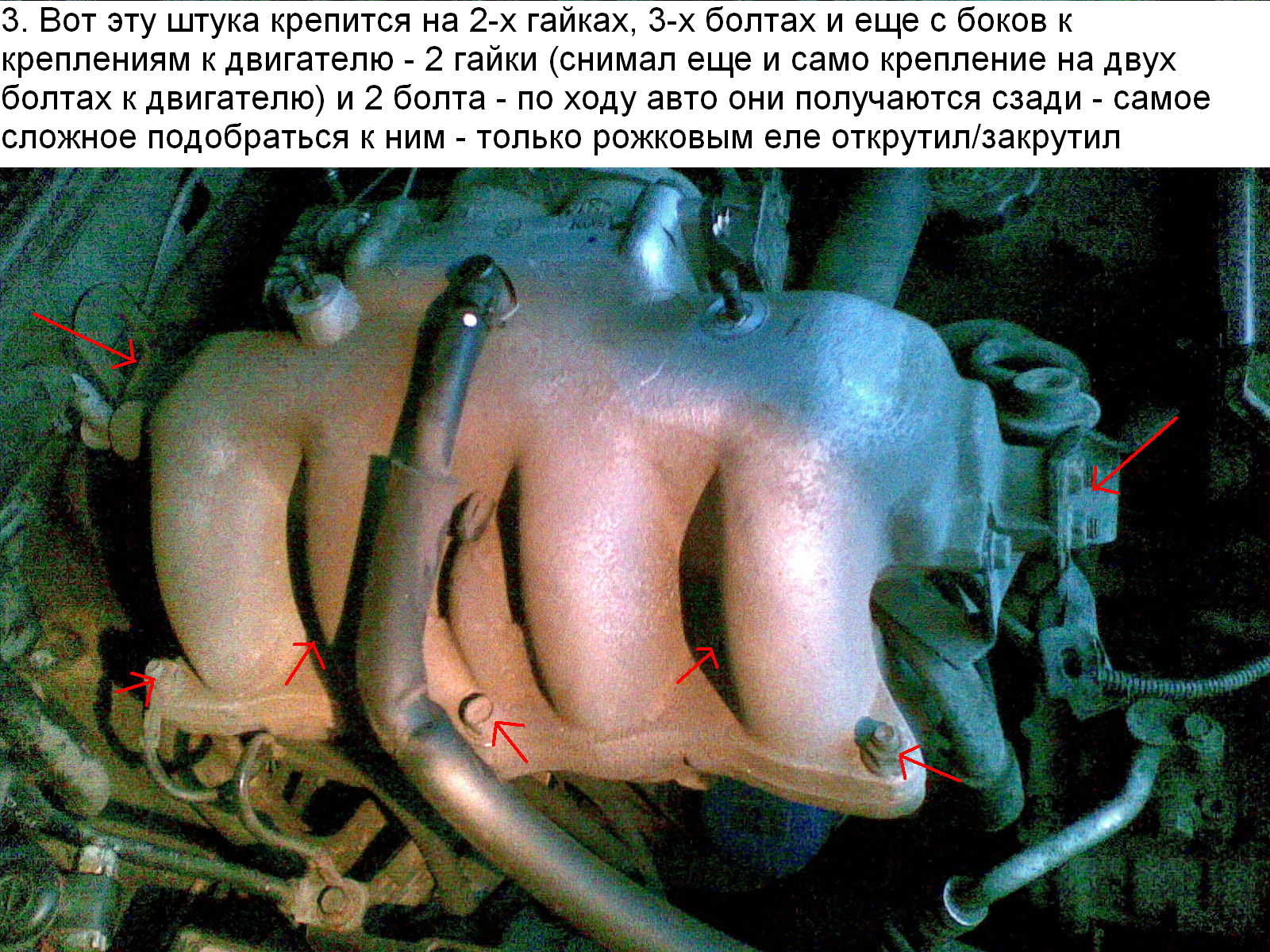 Хомут выковырнул-шланг немного снял-остальное обрезал(замерз блин...)-взял нормальный хомут -затянул-не капает.Но что то всё равно беспокоюсь...Менять этот резиновый сосок-обязательно разбирать весь движок?(это как выше на картинках?) или можно обойтись малой кровью?Место там конечно -хрен подлезешь-все руки раскорябал -пока на морозе тольк с одной стороны хомут поменял-а вот конца этого шланга вообще не увидел...Куда он идёт?И можно ли его махнуть -исхитрится-не разбирая движок-как на фотках выше?Или сможет забить на него и так ездить? Это шланг обратного топливопровода. Надо (по-моему, точно не помню) снимать впускной коллектор. Менять обязательно - он расслаивается, и затяжка хомутом помогает не надолго. -------------------- Ротор поля наподобие дивергентсии градуирует себя вдоль спина и там, внутре, обращает материю вопроса в спиритуальные електрические вихри, из коих и возникает синекдоха отвечания.