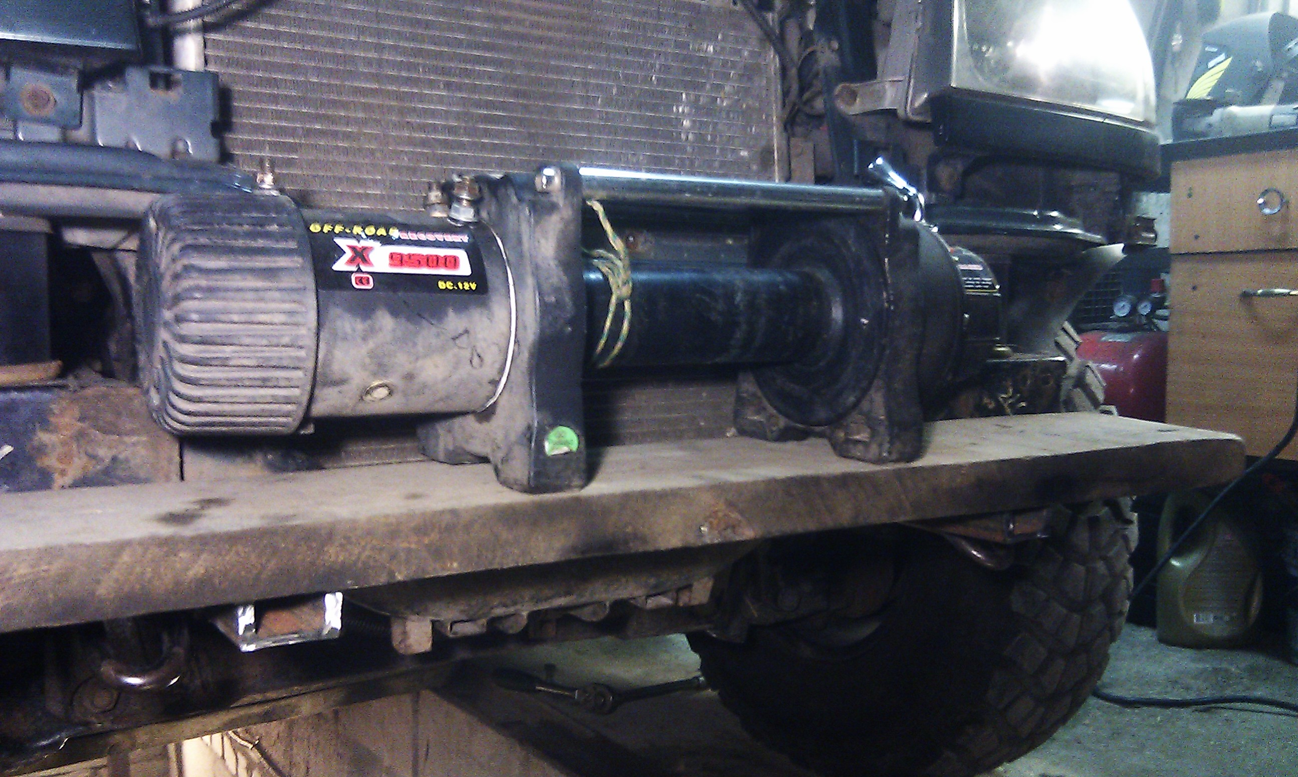 Заехал вечером в гараж, узнать на какие всё-таки саморезы прикрутили площадку для лебёдки. Глядь, а деревяшечку уже сняли. Спрашиваю накой сняли-то? А мне в ответ ни слова, только звон болгарки и по радиатору вжик...