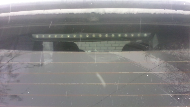 Для изготовления нужно 2 доп стоп-сигнала от Лада Калина-универсал, то есть от ВАЗ 1117. Я покупал на заводе где их делают. Сказали, что поставляют продукцию на заводской конвейер. Цена что-то около 250 рублей за штуку. Выглядит он вот так: Обычные 5 мм красные светодиоды 8 штук. Вокруг светодиодов шайбы-рассеиватели из светопрозрачного материала. Из двух штук сигналов спаивается один. Где резать для спайки - показал красной линией на фото выше, прямо по центру отверстия. Если правильно сделать, то планка со светодиодами защёлкнется в штатные места. Делается часа за 4 с неторопливой подгонкой к спортажевской двери посредством шкурок и ножа. Я себе сделал сигнал на 18 светодиодов. Дополнительно приделал ещё 2 по бокам. Вот эти два дополнительных диода могут отнять много времени и для их приделки нужны реально прямые руки. Если тупо сращивать сигнал на 16 диодов, то времени уйдёт меньше и выглядеть будет почти по заводскому без особых ковыряний. Паял обычным паяльником на 150 ватт с регулировкой мощности. На корпус использовал латунную сетку. Планка, где стоят светодиоды - без сетки, держится отлично, пластик довольно качественный - ABS, если не перегревать, то особо не пузыриться. При умении, думаю, можно спаять так, что даже красить не обязательно. Если нет опыта по пайке пластика, а из инструмента только 2 отвертки - лучше даже не пытайтесь. Коль попало на фото - еще приделал подсветку багажника. Плафончик от Пежо 307. Светит не сравнить со штатной коротышовской имитацией подсветки. Внутри плафончика есть довольно большой отражатель и возможность запихать аж три лампы накаливания. Есть такой же по форме плафон со штурманскими лампами от этого же автомобиля, там три кнопки и три лампы уже с завода. Но даже с одной штатной лампой на 5 ватт светит более-менее. Вот как светит на ярком солнце. Штатные задние фонари на таком солнце не видно практически совсем. -------------------- Kia Sportage 2.0, SOHC, бензин, 95 л.с., МКПП, 1993 г.в.