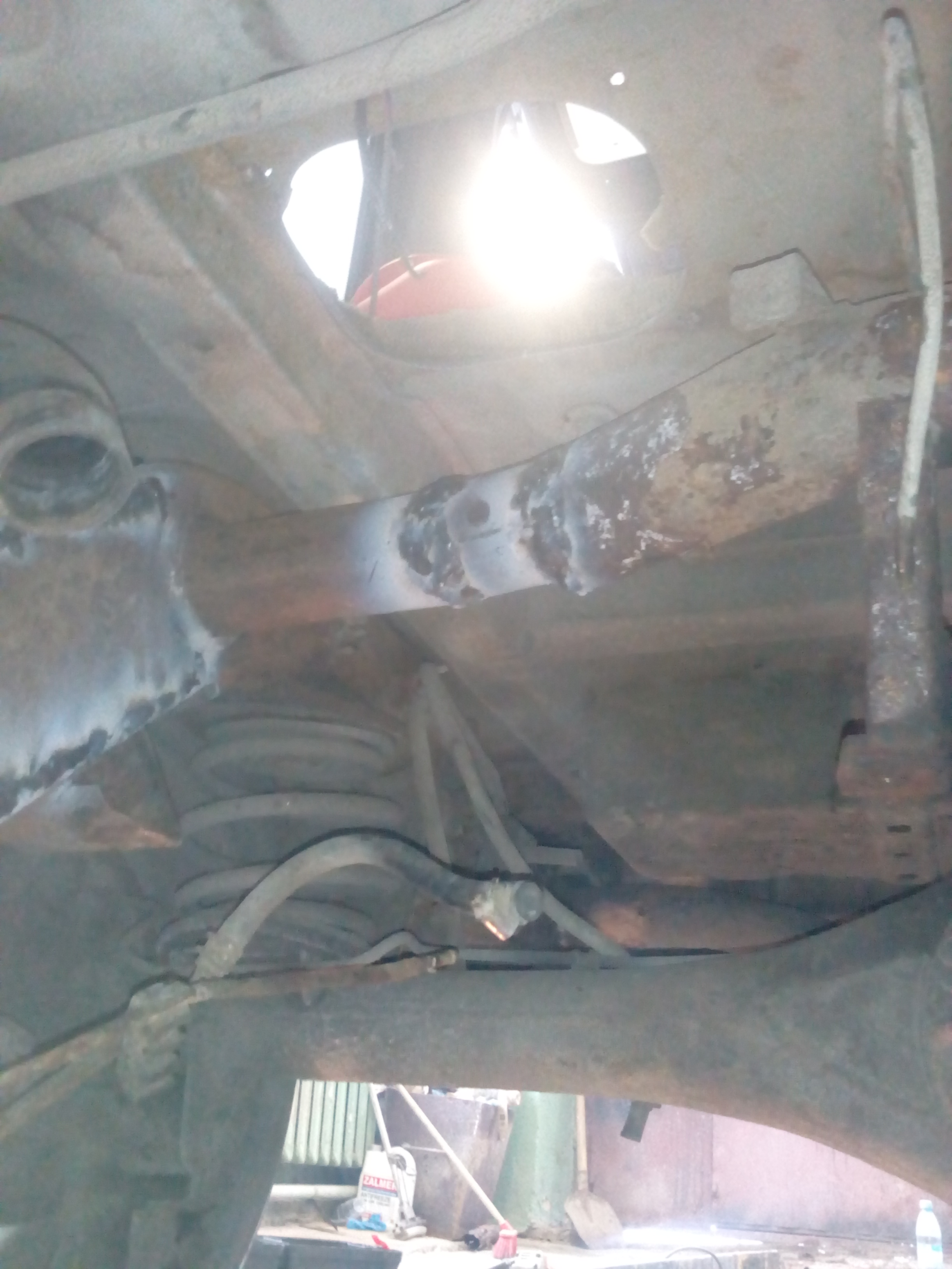Сегодня заднюю часть рамы почти доделал. Вырезал заднюю трубу поперечную. Впинлюрил туда профиль 50*50 на штатное место и ещё одну ниже. Проварил железом четвёрки. Осталось пару латов поставить и все. . а началось все с того что бампер снял. Он немного отвалился.