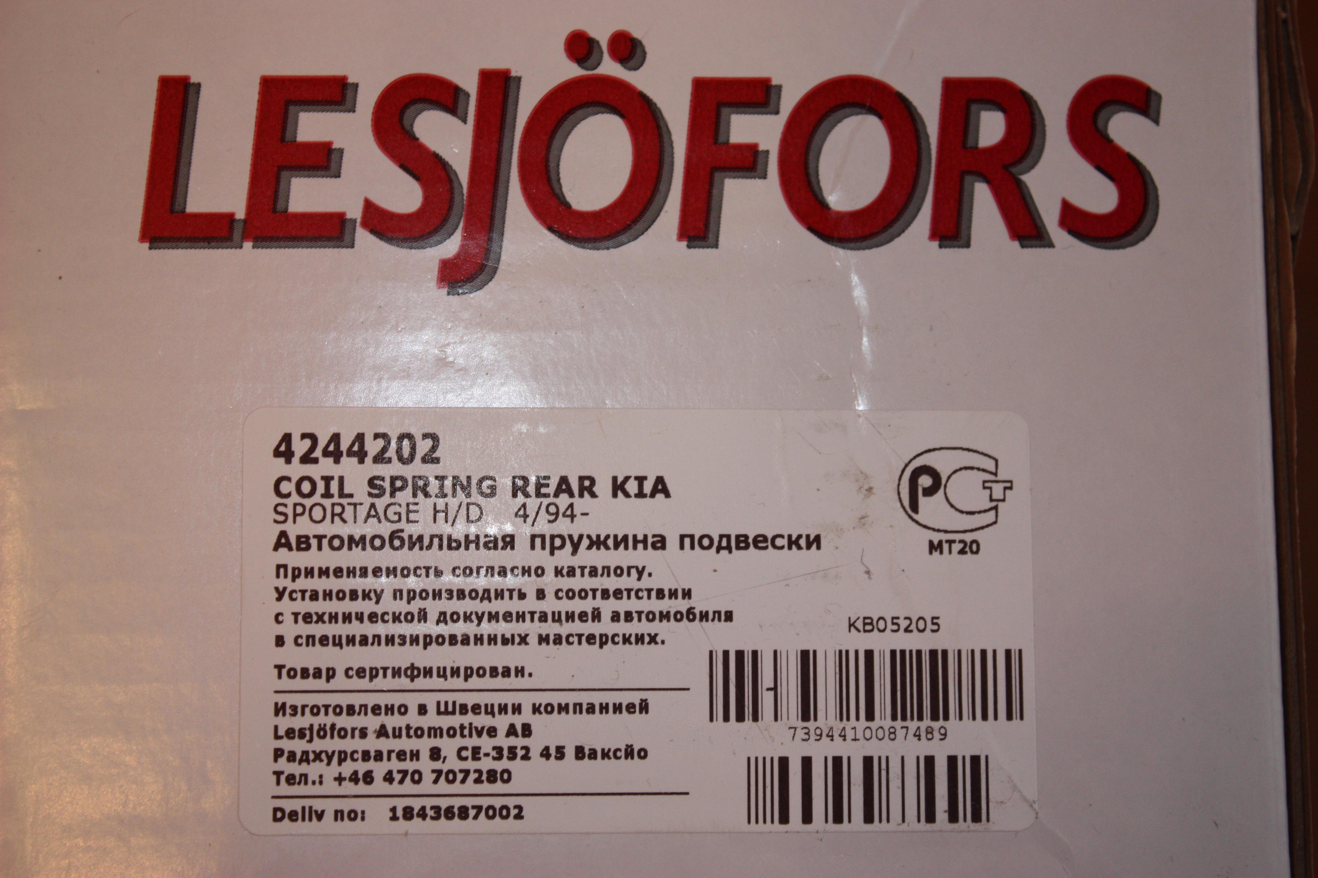 Сегодня купил вот такие пружины на задний мост. Lesjofors 4244202 Цена 3420 рублей за пару. А где покупали если не секрет? -------------------- короткий Sportage, бенз, механика, 2001 г., кореец из америки
