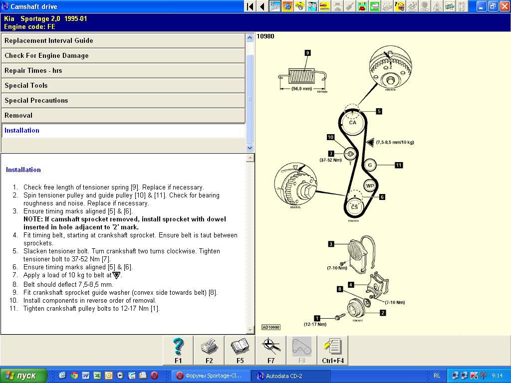 ... Во всех мануалах, куда не смотрел, инструкция везде одна - "Отпустите болт натяжного ролика. Прокрутите несколько раз коленвал. Затяните болт натяжного ролика." А в каком положении его затягивать - не написано. В положении максимального усилия прокручивания коленвала. Из Autodata... ![]() -------------------- Был 98г. 2.0 DOHC, бензин, МКПП