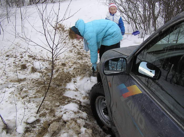 Все с лопатами, кроме фотографа А что, только мне копать что-ли?? А я еще хай-джеком работал На фотках видно, что выдергивал за колесо джеком. Скажи, пж-та, поподробней, а что делал или подкладывал после того, как поднял джеком колесо и к чему это проивело? Что обычно делают в таких случаях - подкладывал бревна. Но проделав это с одним колесом, понял, что придется поднимать все четыре. В общем, как-то расхотелось, да и машину попортить таким способом очень легко. Так что дальше выдергивался лебедкой и динамической стропой. Весьма успешно! -------------------- Mitsubishi Pajero Sport. 3.2d, SS, 2008. синий. лифт подвески +40мм. бокс на крыше.