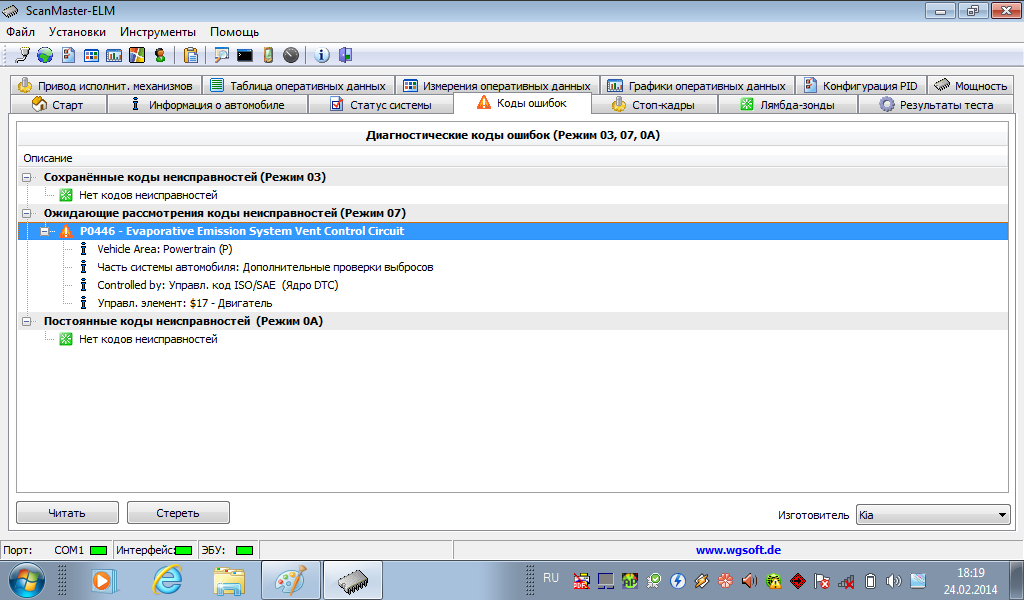 Сделал (сам, с ELM327) диагностику, появилось вот что - ошибка Р0446; часть системы автомобиля: дополнительные проверки выбросов.