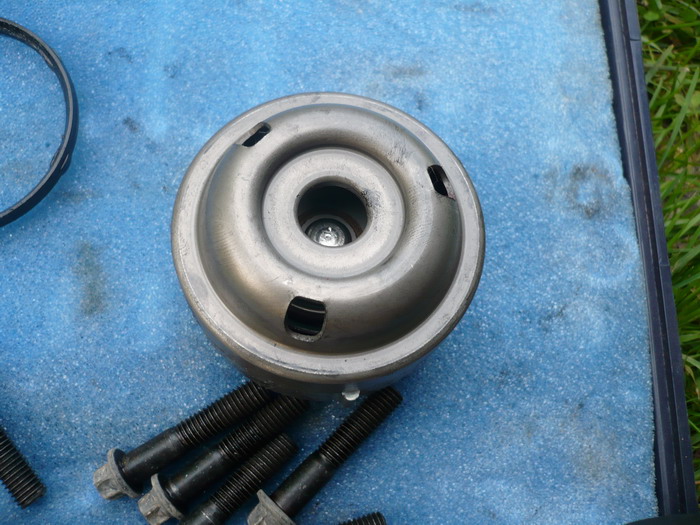 Разбирается элементарно. Сначала аккуратно поддеваем прокладку. Оказалось, что она алюминиевая с покрытием. ![]() После этого легко поддевается и вынимается сальник. ![]() Затем вынимается внешняя "коронка", которая шлицами цепляется за корпус муфты. ![]() ![]() В конце вынимается внутрення начинка муфты - шестеренка с пружиной и мемраной. ![]() ![]() Крутил я эту муфту и так и сяк. Ну НЕ РАЗМЫКАЕТСЯ она. И все тут. ![]() ![]() Просьба к resdim`y - Может, посмотришь на своем, так ли выглядит изнутри муфта? На последней фотографии видны три отверстия. Мне вот интересно, должны ли в них входить три лепестка при полном сжатии пружины? В моих муфтах они не попадают в эти дырки. И вот как раз эти "лепестки" и не дают, чтобы шестеренки муфты полностью разомкнулись. ![]() -------------------- Mitsubishi Pajero Sport. 3.2d, SS, 2008. синий. лифт подвески +40мм. бокс на крыше.