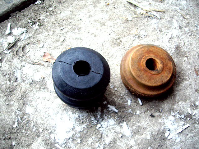 Я покупал подушки от ГАЗ-53 (черная на фото) 20 рублей. А на наши цену узнаешь офигеешь Резал ее на ДВЕ части, следовательно надо всего 4 шт. Нижние у меня были в оч.хорошем состоянии. Менял сам на 2-х домкратах и 2-х пеньках 20000 км полет отличный. Эскизы прикрепленных изображений -------------------- Коротышка был - это про Спортажика, а теперь Слоник.