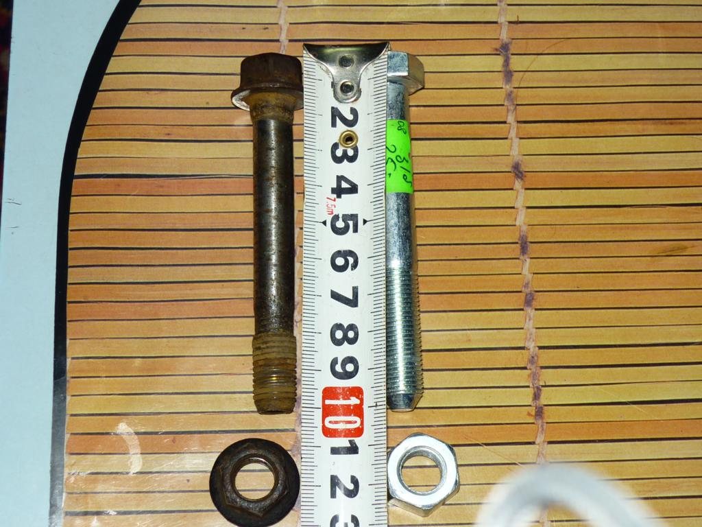 вобщем пролил все болты керосином и вэдэшкой попшикал, задомкратил машину под мост, снял колесо, выставил под чурки для страховки и ПОНЕСЛОСЬ, первым делом начал с гайки идущей к мосту возле уха амортизатора, заднего, воротком с головкой тянул нефига не идёт, капитально прикипела видимо, пролил ещё раз керсином, достал пьезо горелку и начал греть гайку, приготовил трубу на вороток, и ещё одну трубу на неё потолще, нагрел , и начал пробовать гайка , с треском пошла интересно очень главное с левой стороны разбило болт с правой у меня нету люфта, такого как был, до разборки, как потеплеет надо будет и с правой стороны заменить этот болт, P/S-хочу сказать огромное спасибо за подсказку , человеку PANZER 38, за то что угадал точный диагноз , поломки моего спортаги, а то так бы я начал заказывать салентблоки, которым не чего не сделалось, болты подобрал от ваз 2108-ценник на них был зелёный цена 28 руб, конечно корейские они качественнее, но на скорую руку я поставил от ваза, думаю норм будет, прокатился , сегодня после ремонта , так пропал этот звук по перевалам, типа дыщь дыщь, машина едет ровна и плавно, спереди воткнул аморты манро-адвентуре, с волговскими пружинами, сзади леджифорсы усиленные, с амортами холла-волговские-масло, всё в норме, как потеплеет надо правую тягу посмотреть,спасибо всем за советы фото прилагается- очумевшого болтика-который давал стук ФОРУМ ЭТО СИЛА-И ПОМОЩЬ БЛИЖНЕМУ Эскизы прикрепленных изображений -------------------- калининград 2006-короткий