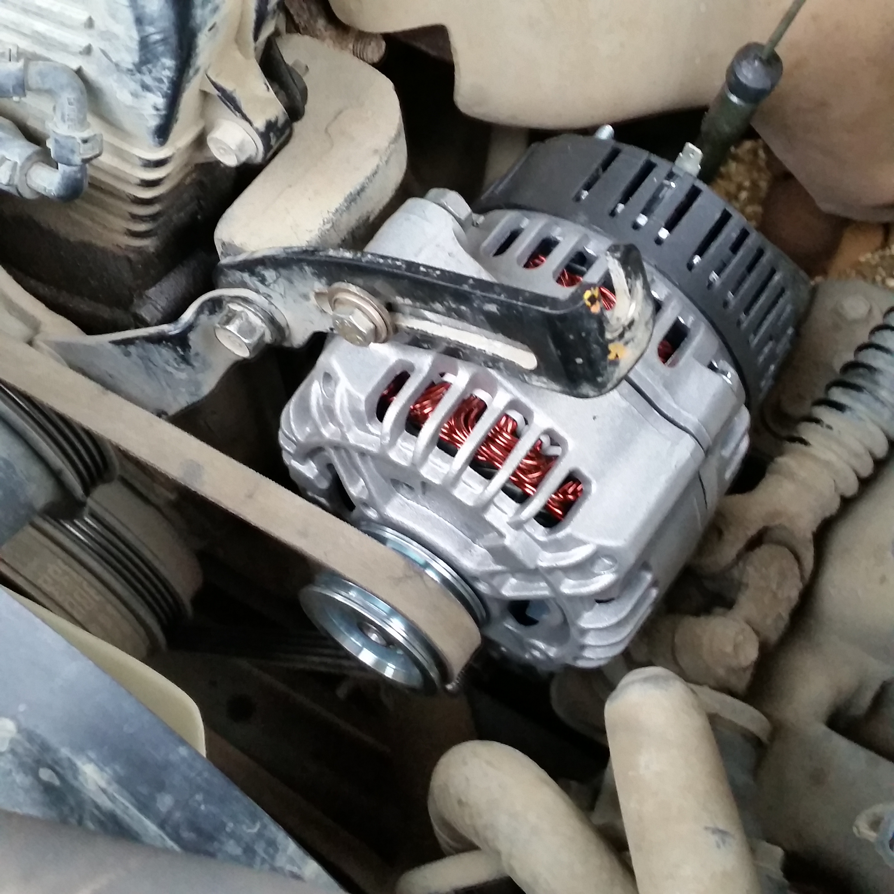 Я решил сохранить возможность установки родного генератора, поэтому разъём не отрезал. Изготовил короткий шнурок под родной разъём (контакт "L" ) и клемму генератора (конакт "(61)+D") Контакт "S" уже соединён с "B" в проводке(по родной схеме) , поэтому для него ничего делать не надо. Родной контакт "В" = контакт "(ЗО)" на новом гене Всё тщательно изолируем и подключаем Здесь уже писали, но повторю, что необходимо один болт М10 длиной 90мм, гайка, шайбы и гравер для крепления кронштейна на штатное место один болт М8 длиной 90мм, гайка, шайбы и гравер для крепления генератора к кронштейну один болт м8 длинной 70мм, гайка, шайбы и гравер для верхней планки Провод сварочный КГ-16 2 метра, к нему 2 клеммы под болт М6. Предохранитель MAIN -140А например Toyota 90982-08286 (на 140 Aмпер) провод 20-25см для перемычки от контакта L разъёма до генератора, к нему мама-папа лепестки, кусок провода с "мамой" у меня был, а "папу" я выломал из неисправной релюхи. Кстати, ремень родной под виско-муфту. Новый ген работает нормально, 14,2-14,4 на холостых, только шуршит погромче родного Сообщение отредактировал genosse - Sep 15 2017, 11:59 PM |